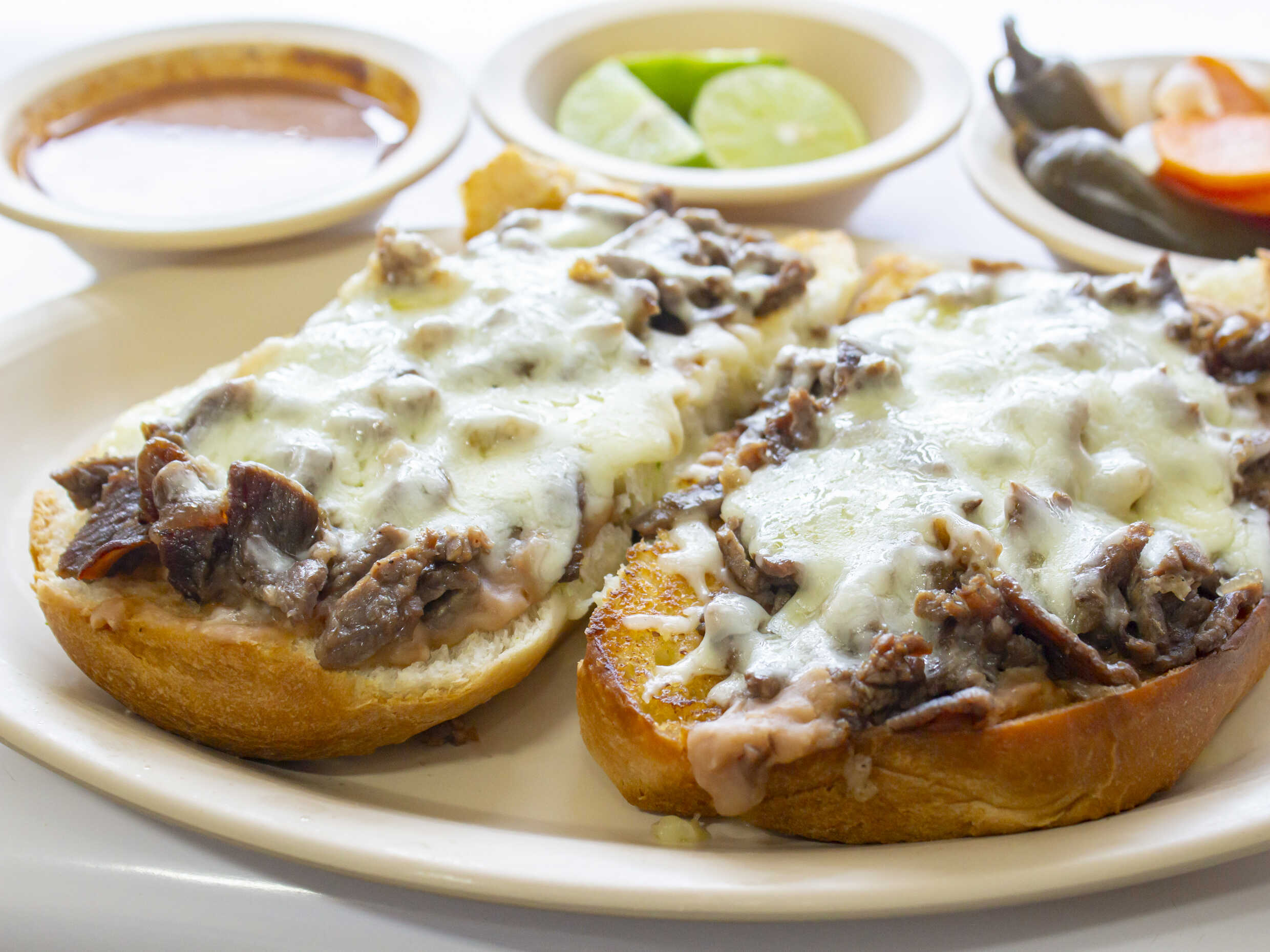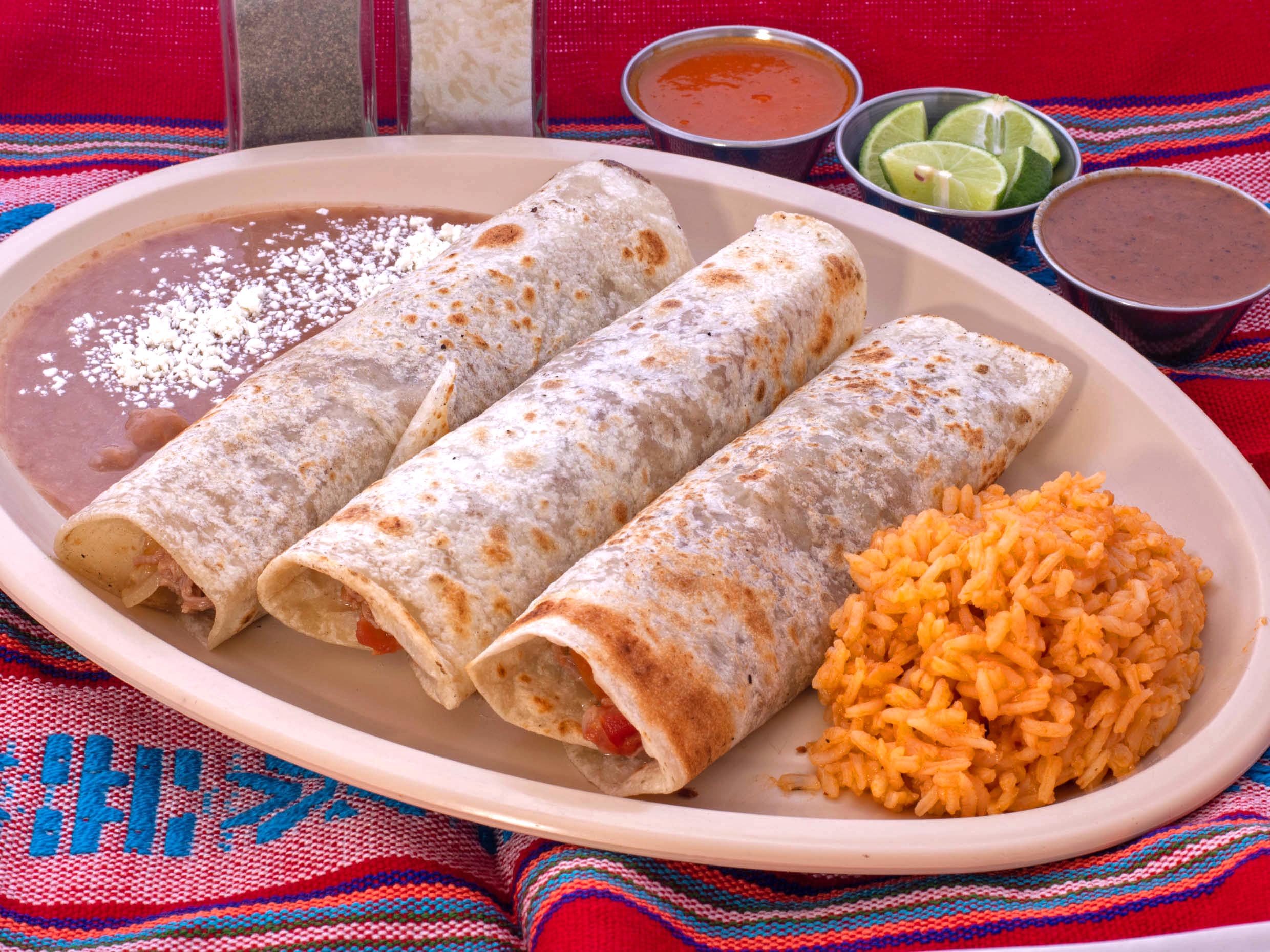 3 Burritos de machaca, Acompañandos con lechuga y frijol.
