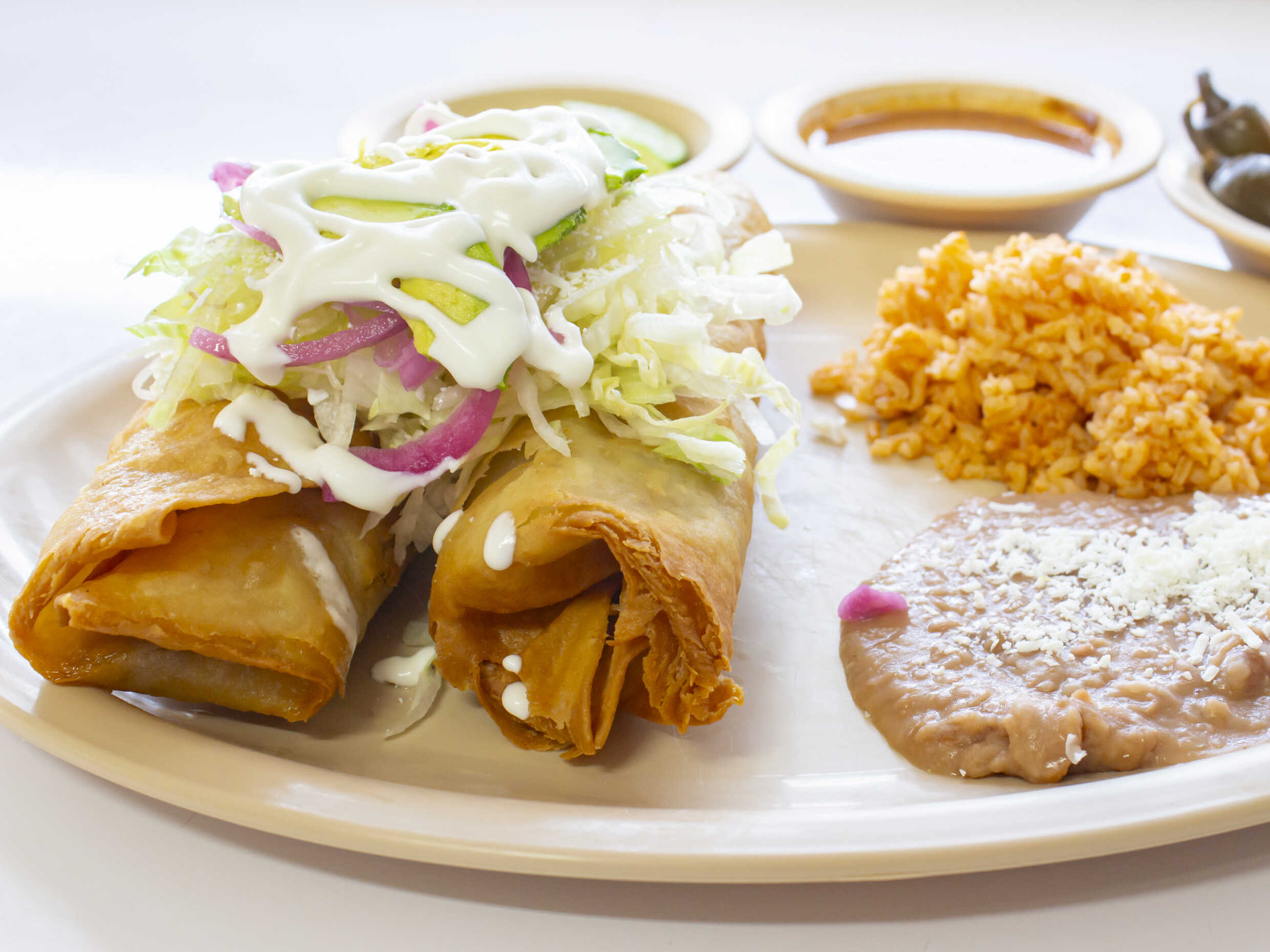 Orden de 2 Chimichangas de carne, Acompañandas de lechuga y frijol.