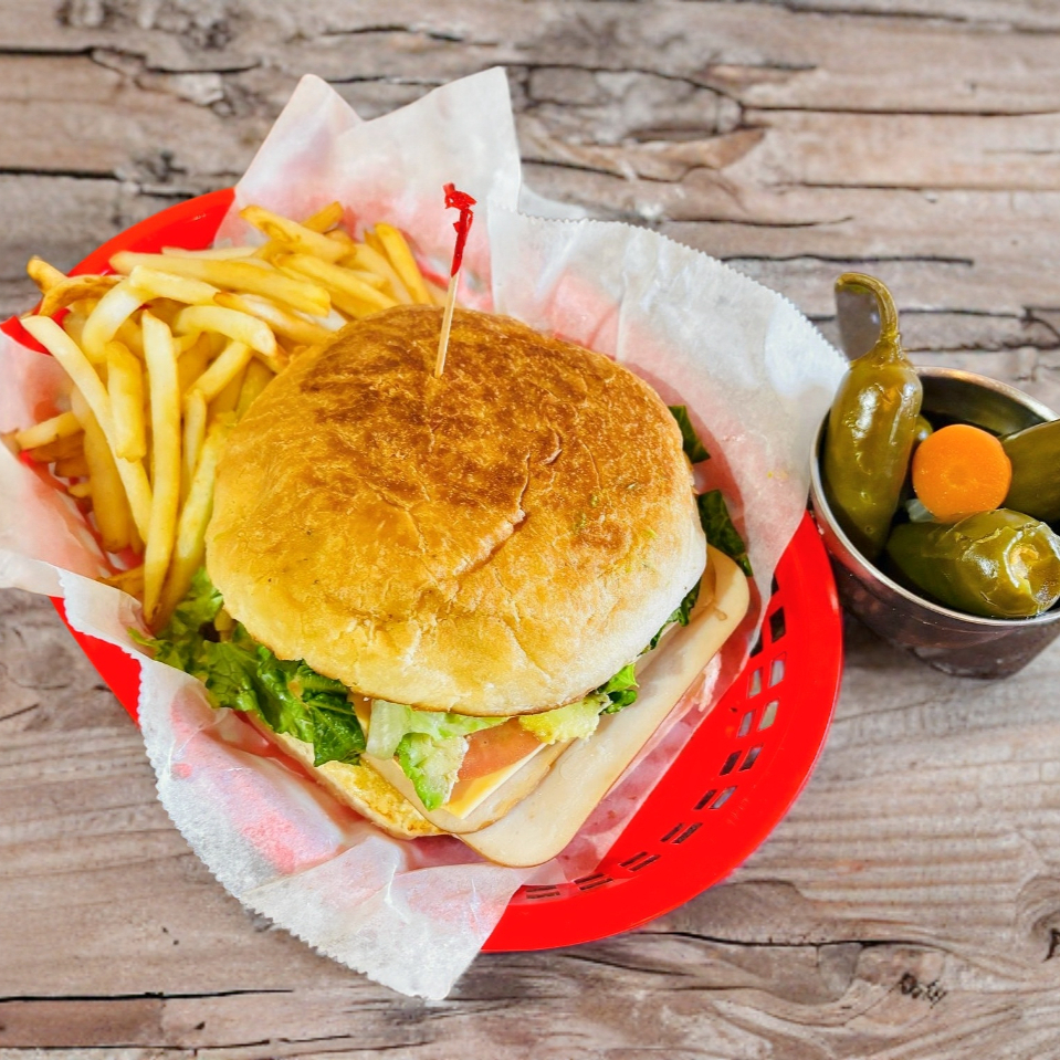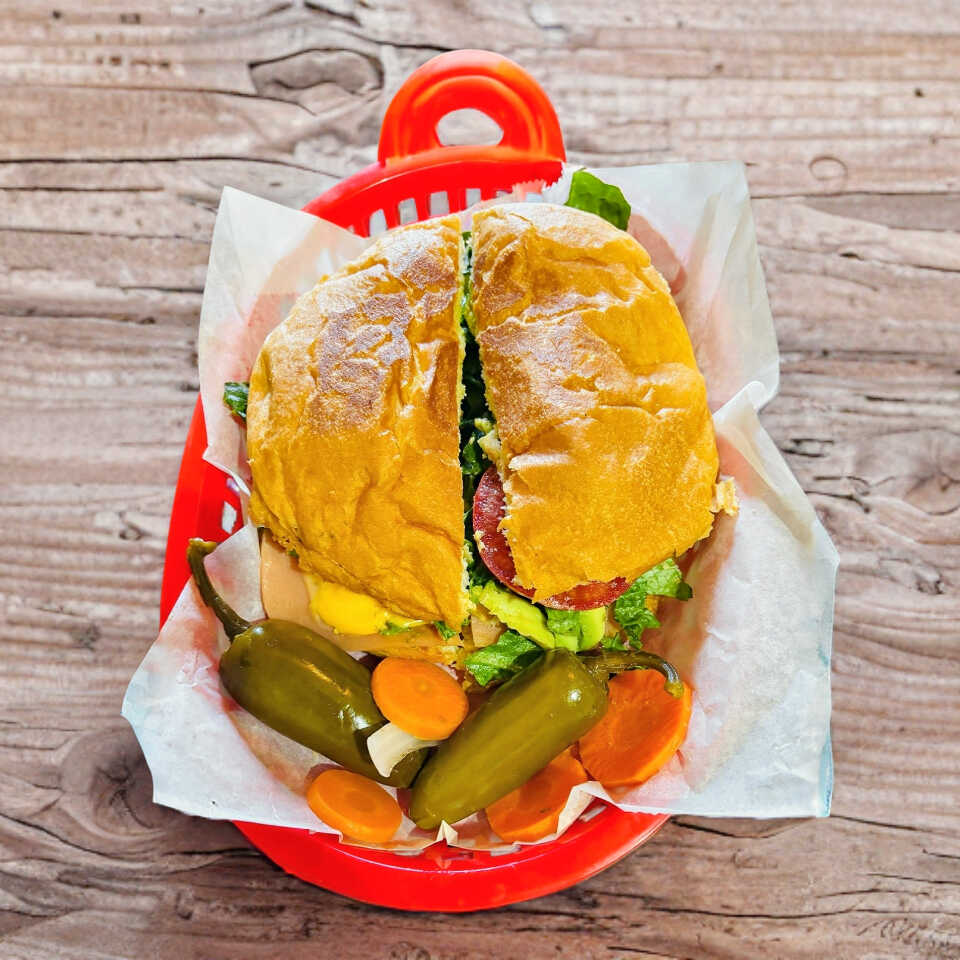 Bistec, pavo, jamón, tocino , queso blanco y amarillo