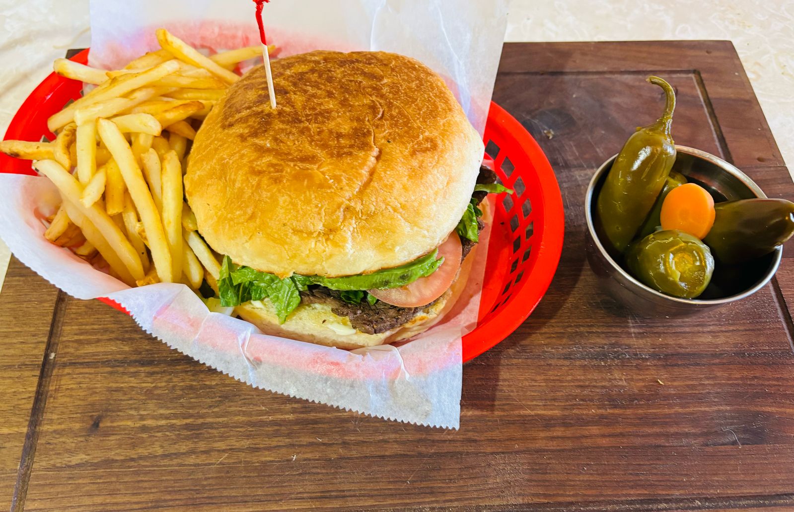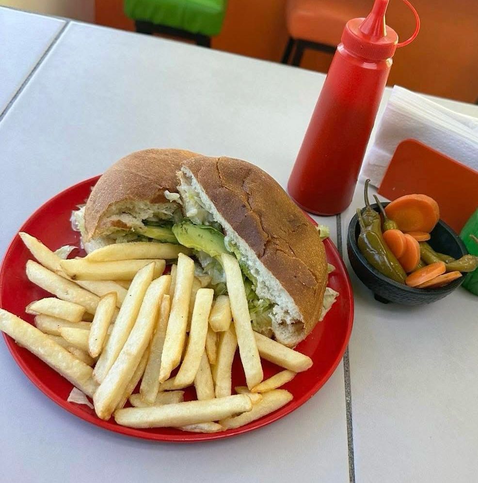 Torta. Acompañada de papas fritas