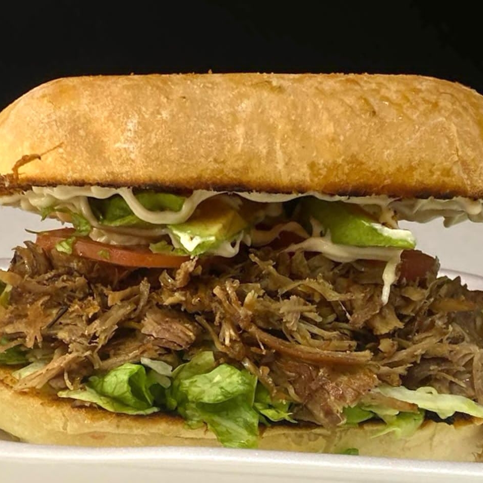 Lomo, mayonesa, lechuga, tomate y aguacate.