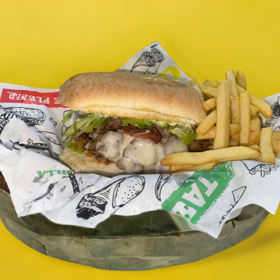 Bistec, lomo, tocino, queso monterrey, mayonesa, lechuga, tomate y aguacate.