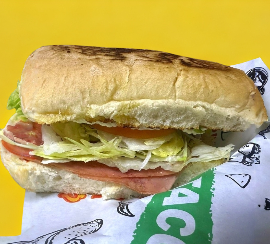 Jamón, mayonesa, lechuga, tomate y aguacate.