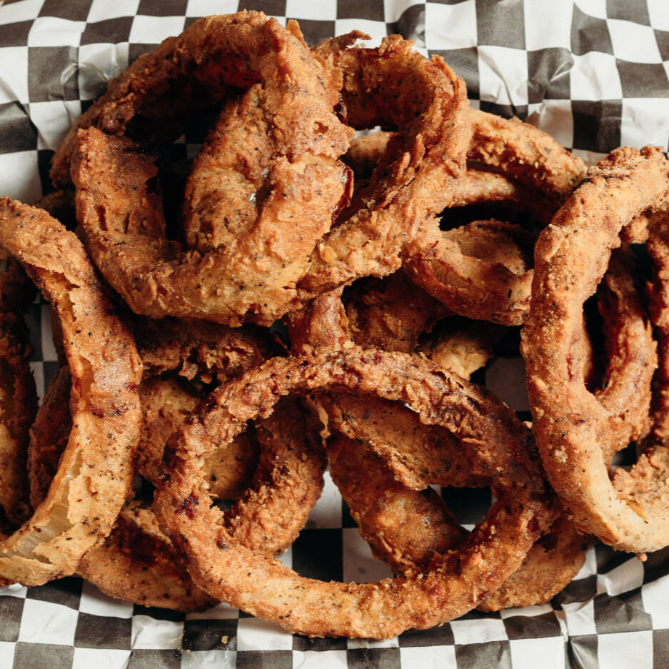 Papas fritas sazonadas, bañadas de aderezo Truffle mayo y cebolla caramelizada.