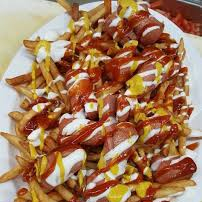 Papas fritas con aderezo de la casa 1 buba una salchicha clásica con tocino