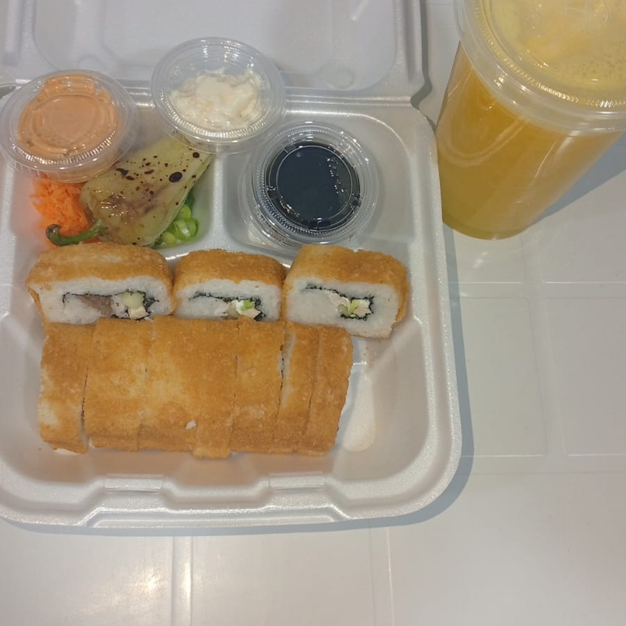 ROLLO NATURAL FILADELFIA AGUACATE PEPINO FORADO DE TAMPICO Y CAMARON EMPANIZADO