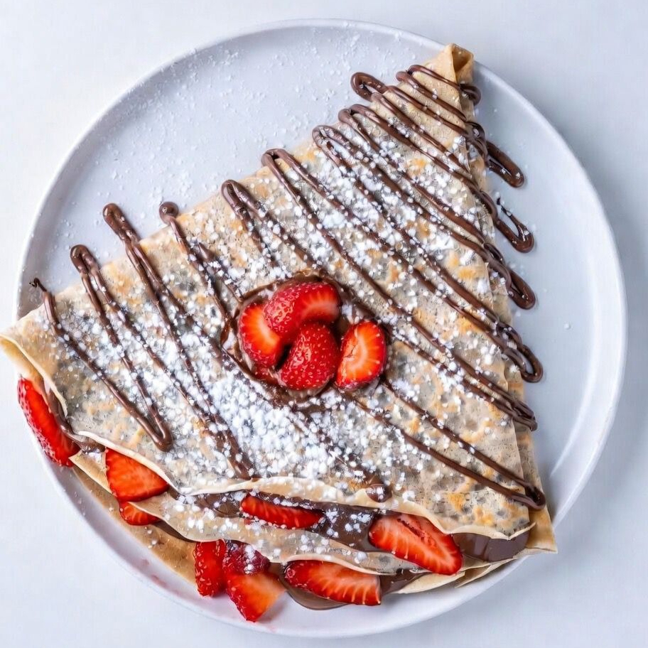Delicada crepa recién hecha, suave y ligera, rellena con tus ingredientes favoritos. Dulce, irresistible y perfecta para cualquier antojo.