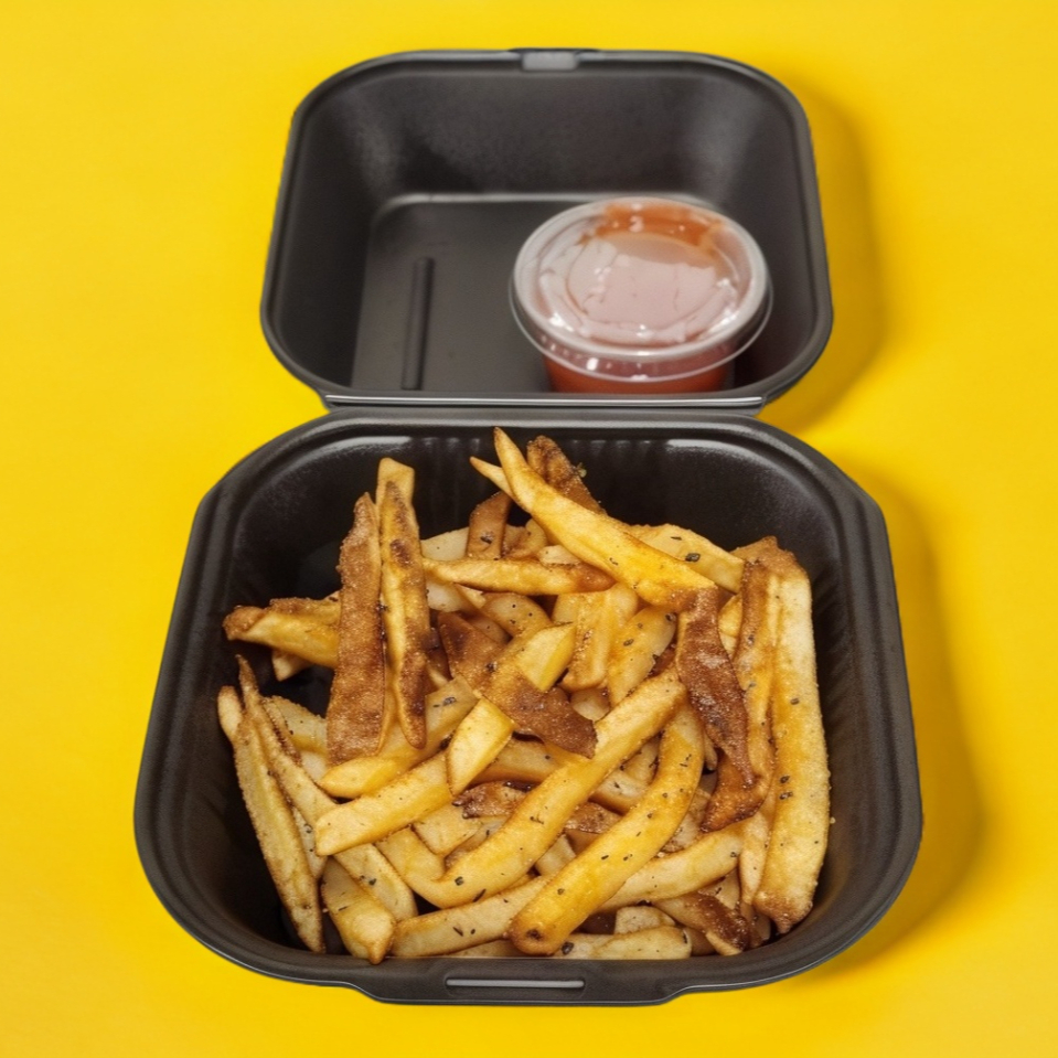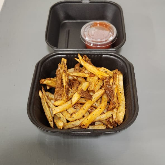 Papas fritas, bubas, ketchup y aderezo de la casa