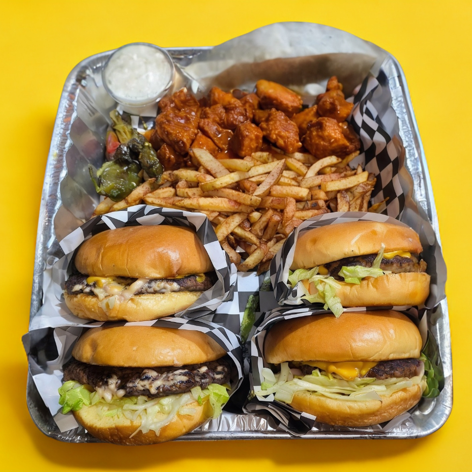 Hamburguesa Clásica*4 + Papas*2 + Orden Chica Boneless*1 + Extras*1