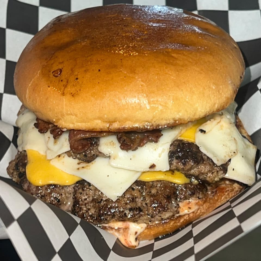 Doble Carne 100% res , doble queso, ketchup y aderezo de la casa