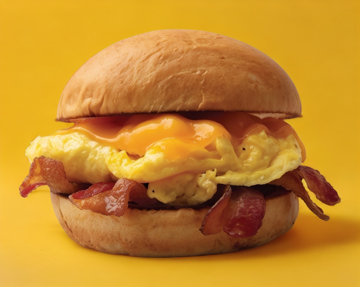 1 revuelto, Tocino, Queso cheddar, Aderezo hash en pan brioche