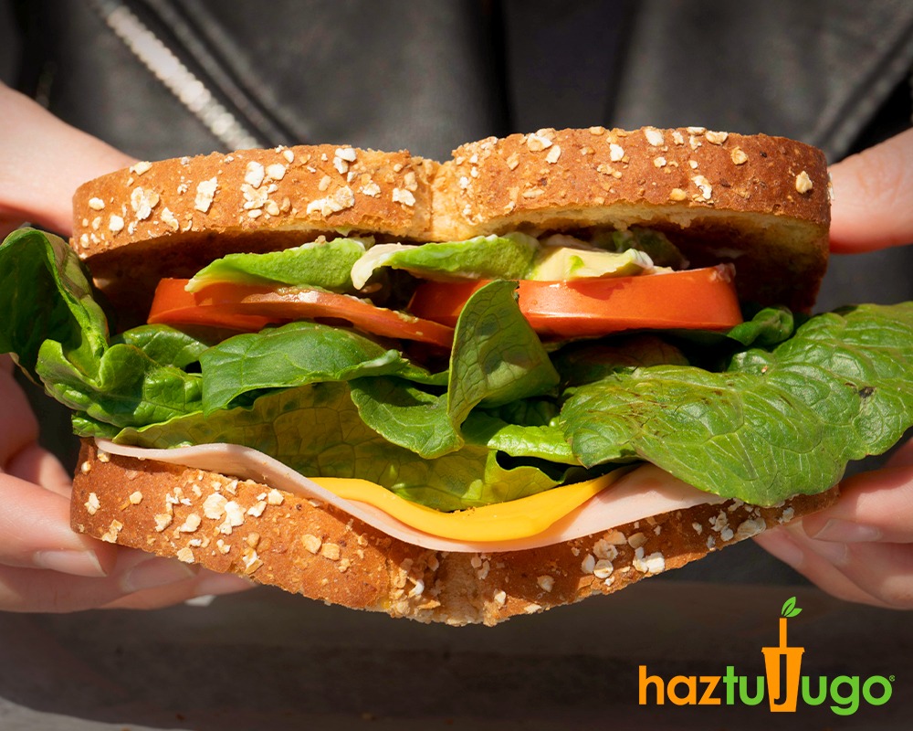 Jamón de pavo, queso americano, lechuga romana, espinaca, tomate y mayonesa.