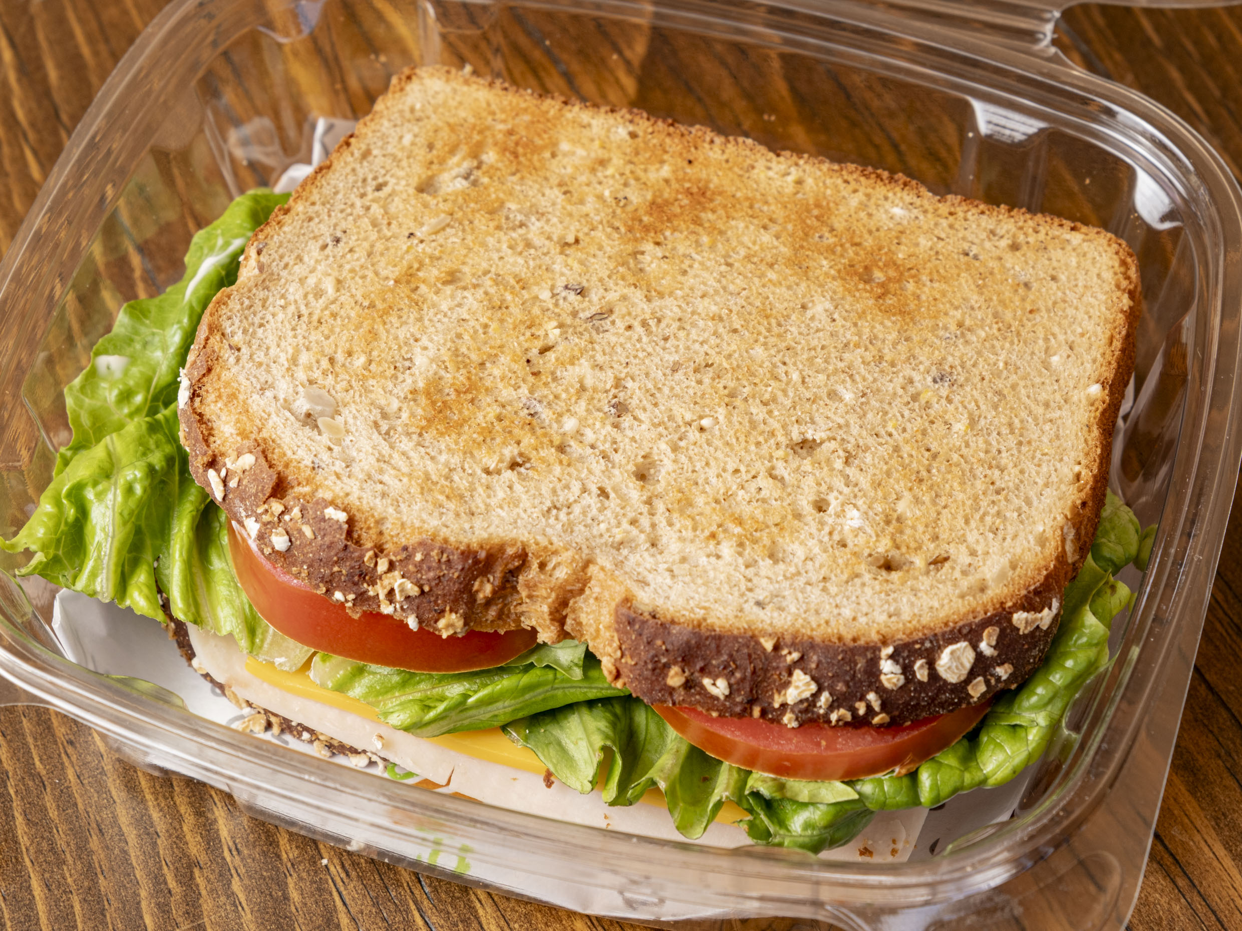 Jamón de pechuga de pavo, lechuga romana, espinaca, tomate, queso americano, mayonesa.