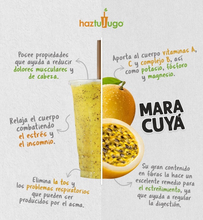Maracuyá + mango + jugo de naranja + agua mineral