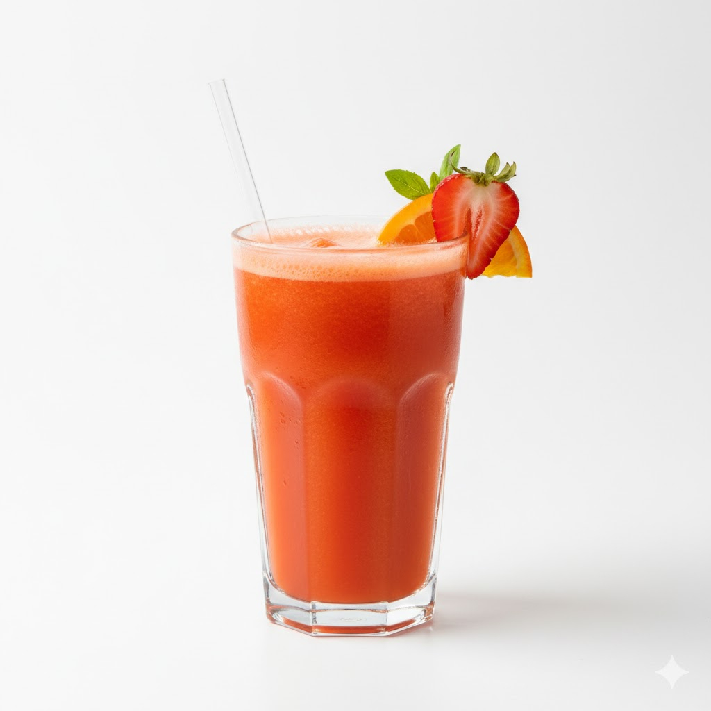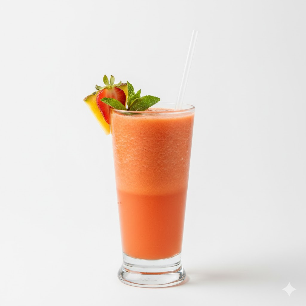 Zanahoria, papaya, fresa y jugo de naranja. 16oz