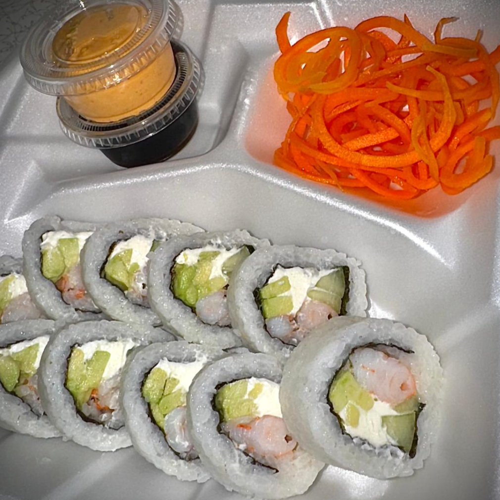 Rollo natural, con alga, a elegir entre camarón, carne asada al carbón, pollo o surimi, aguacate, pepino y Queso Philadelphia.
