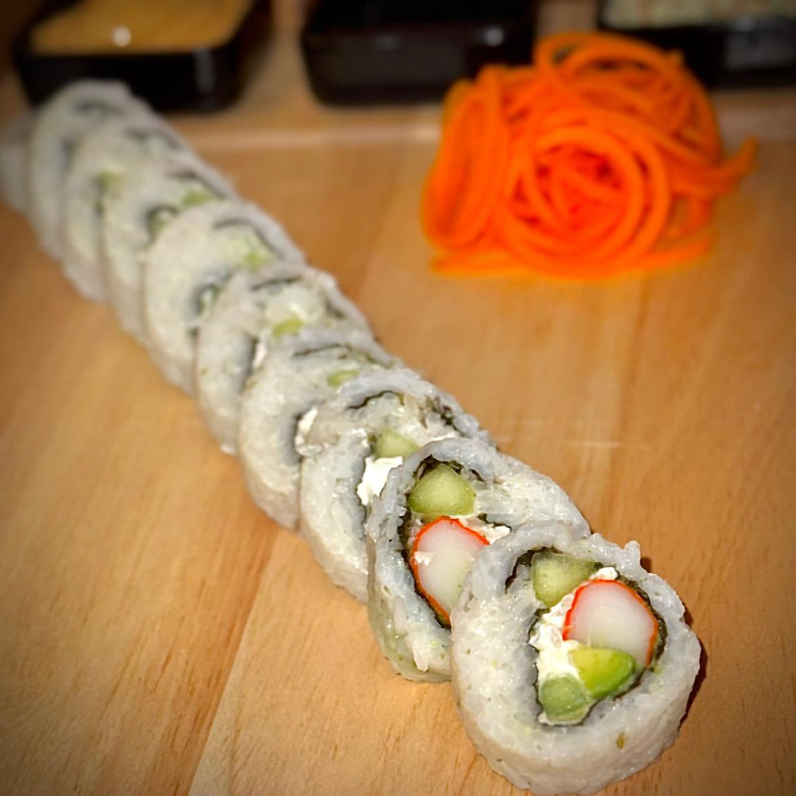 Rollo natural, surimi, aguacate, pepino y Queso Philadelphia.