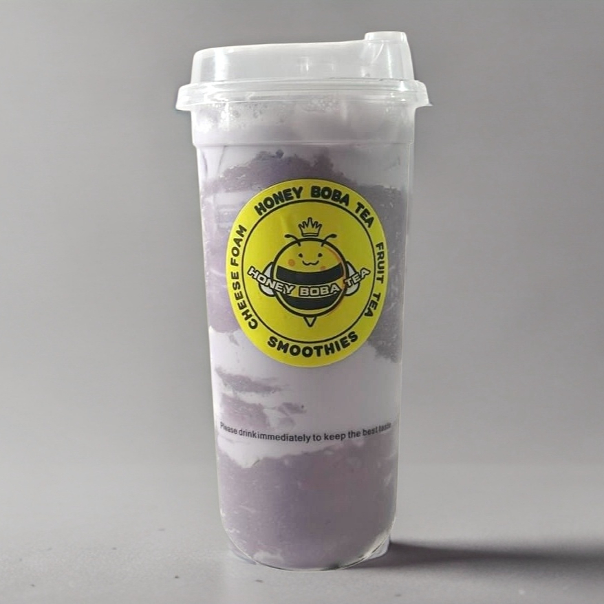 Smoothie de blueberry a base de leche acompañado de cheese foam. No incluye boba.
