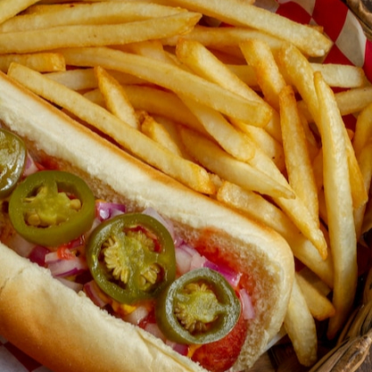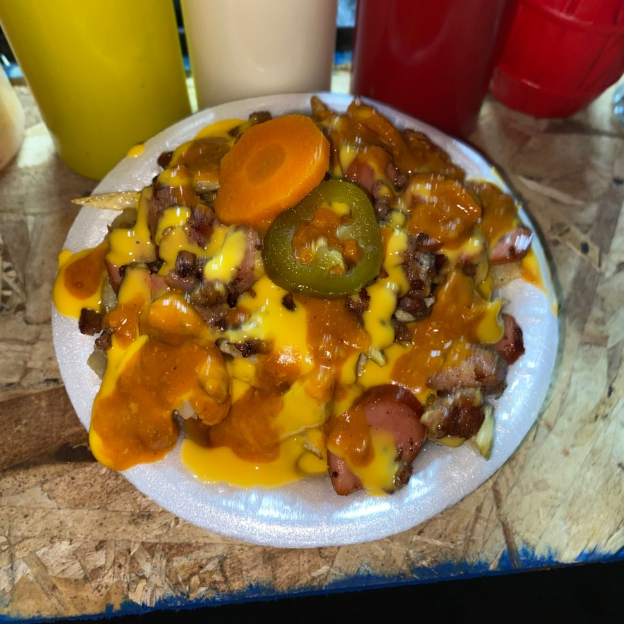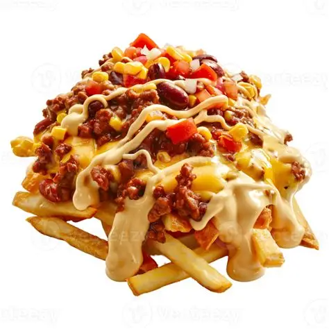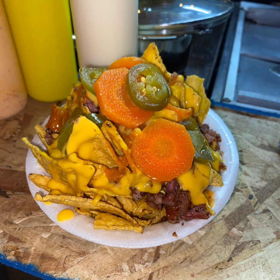 queso, tocino, frijol, chipotle, chiles jalapeños y zanahorias