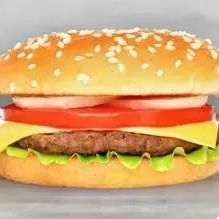 Hamburguesa con dos jugosas carnes de res, acompañado de papas fritas, ingredientes a elegir: queso americano amarillo, lechuga, jitomate, cebolla, pepinillos, etc..