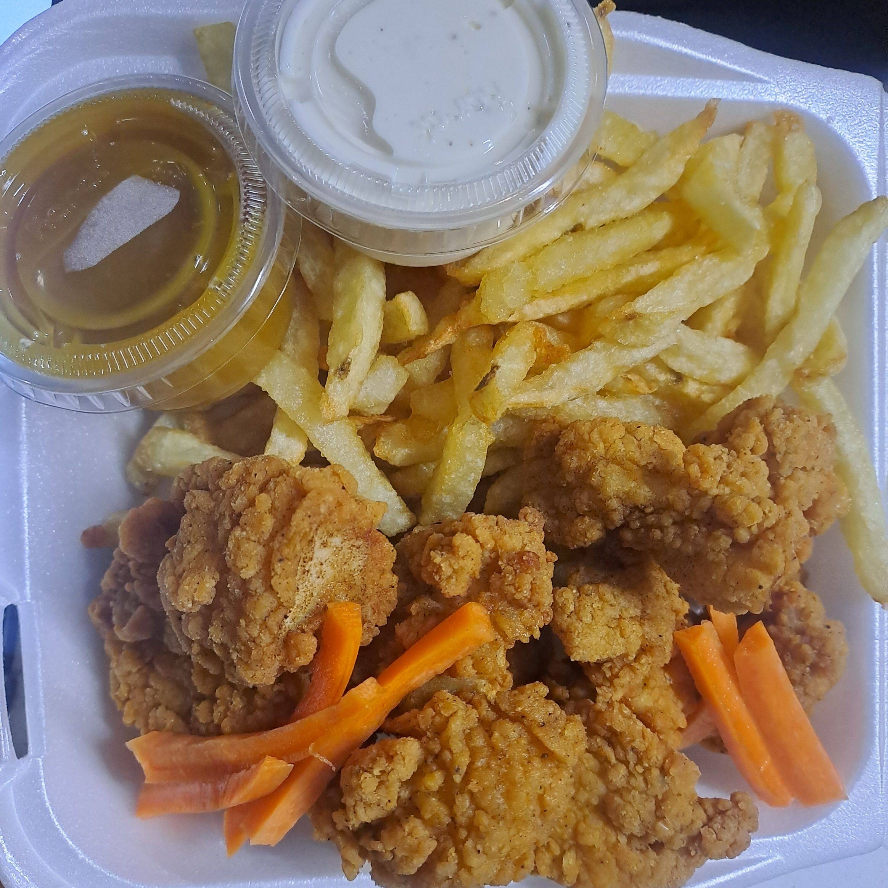 250 grs de boneless con salsa de su eleccion acompañado de papas fritas, bastones de zanahoria, tazon aderezo ranch, cubiertos incluidos