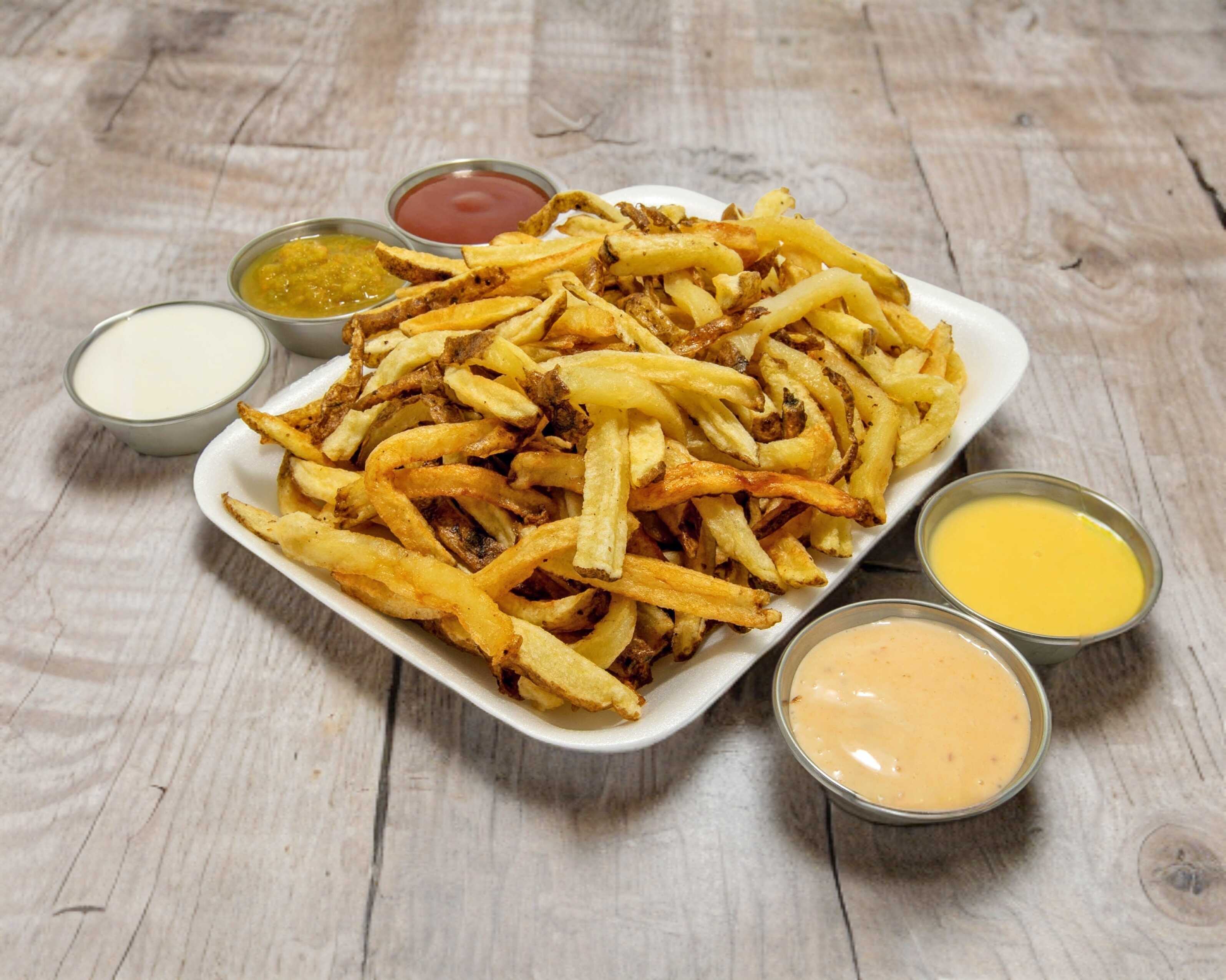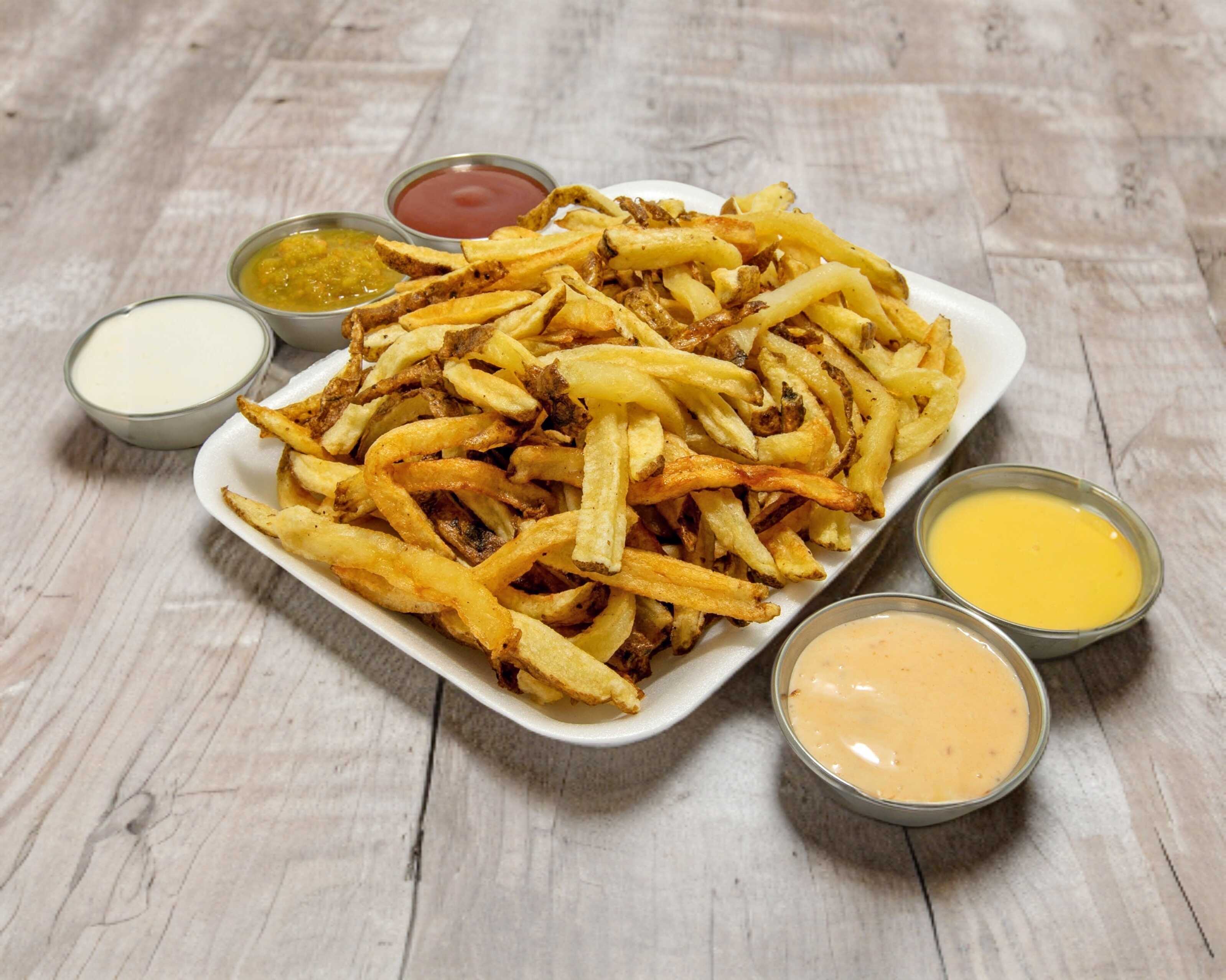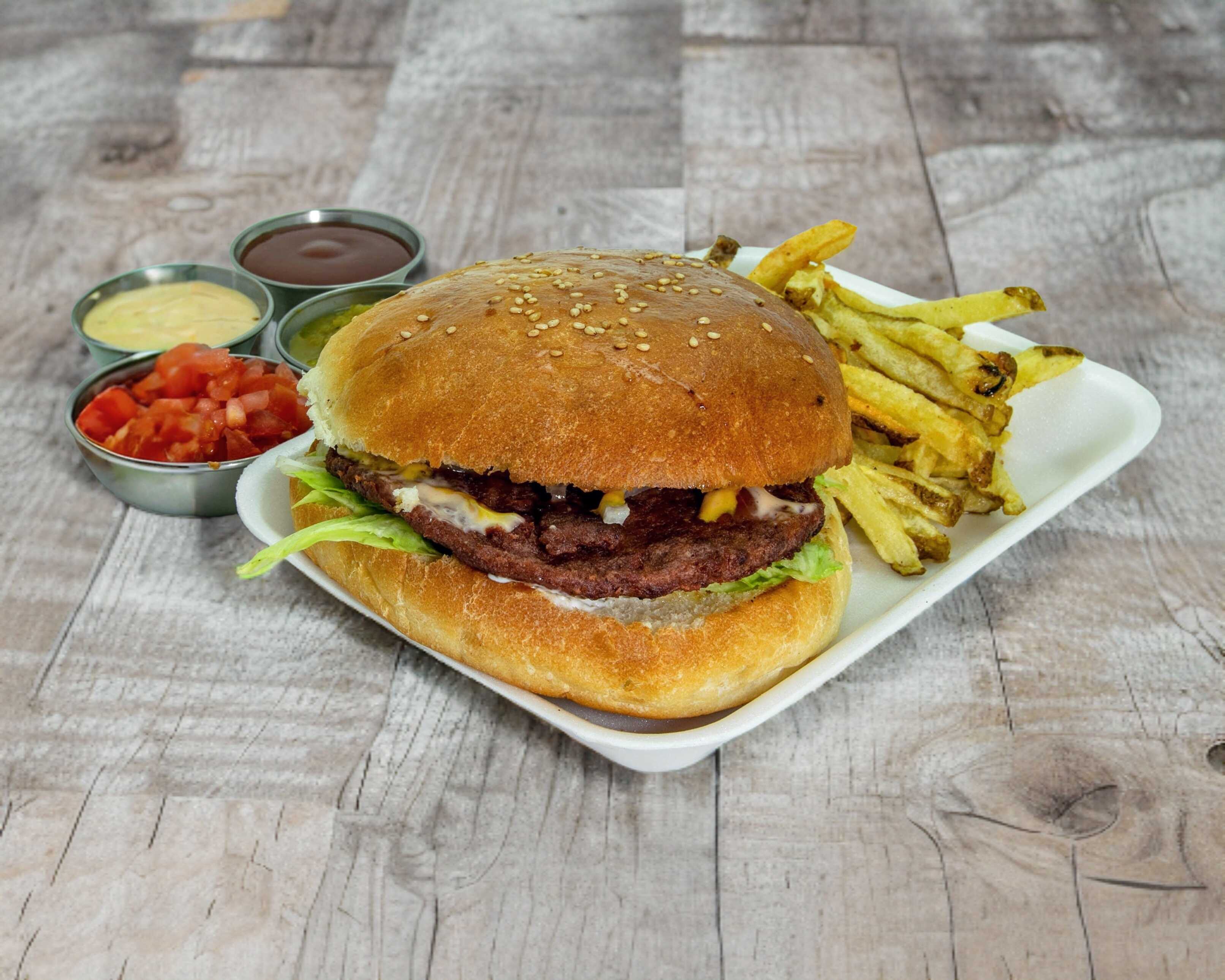 Queso, lechuga, tomate, cebolla, mayonesa, mostaza, catsup y chipotle.