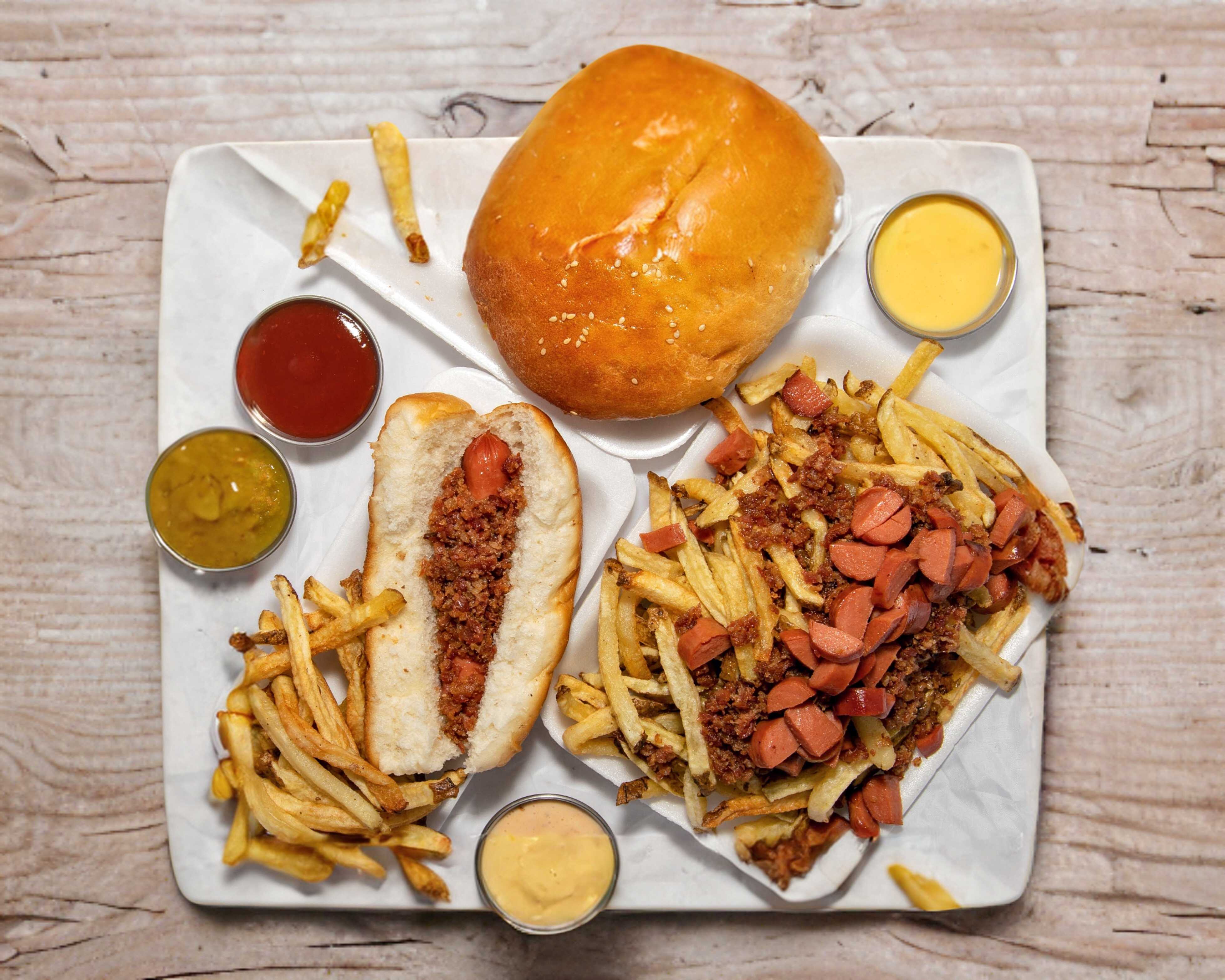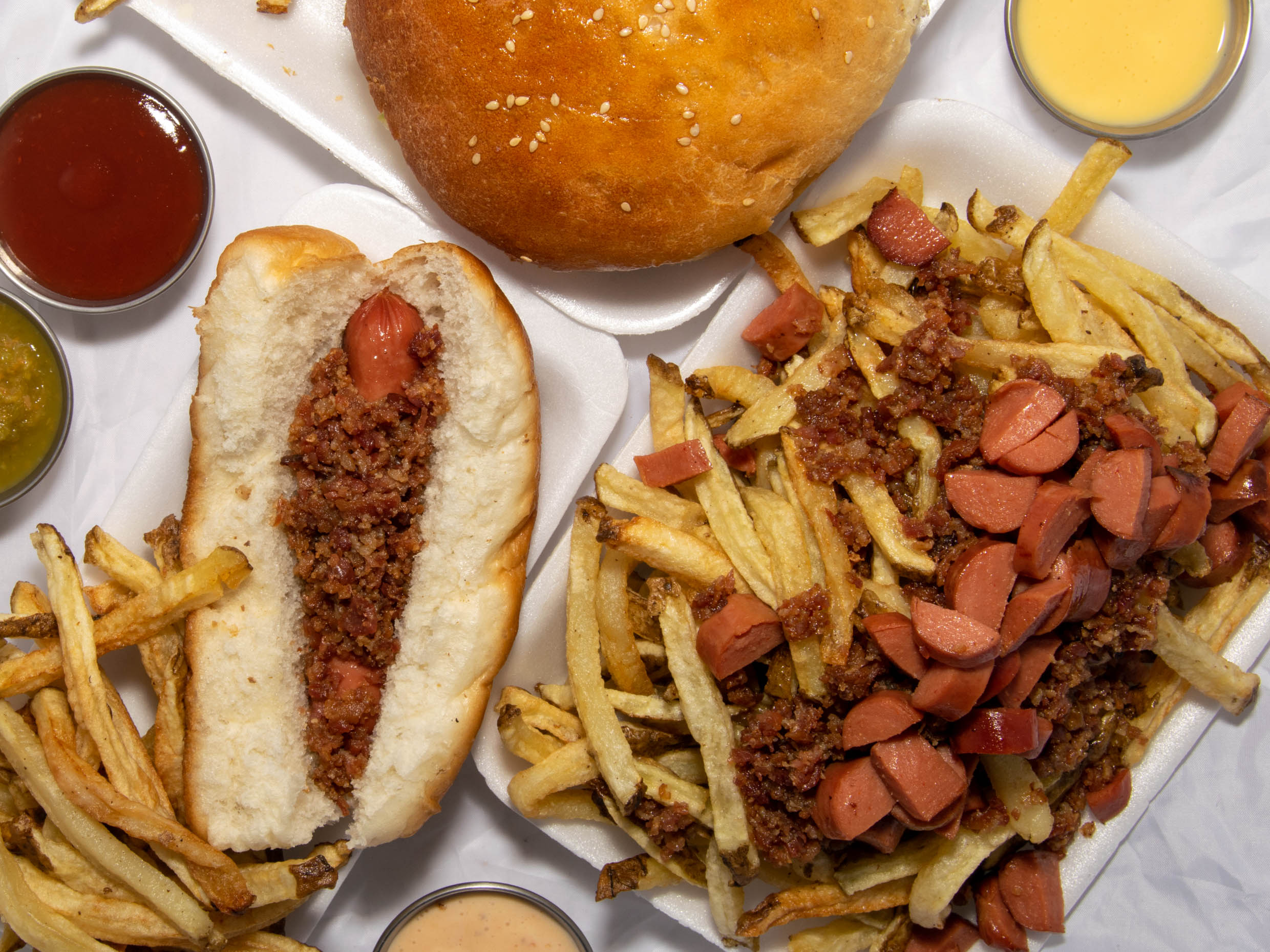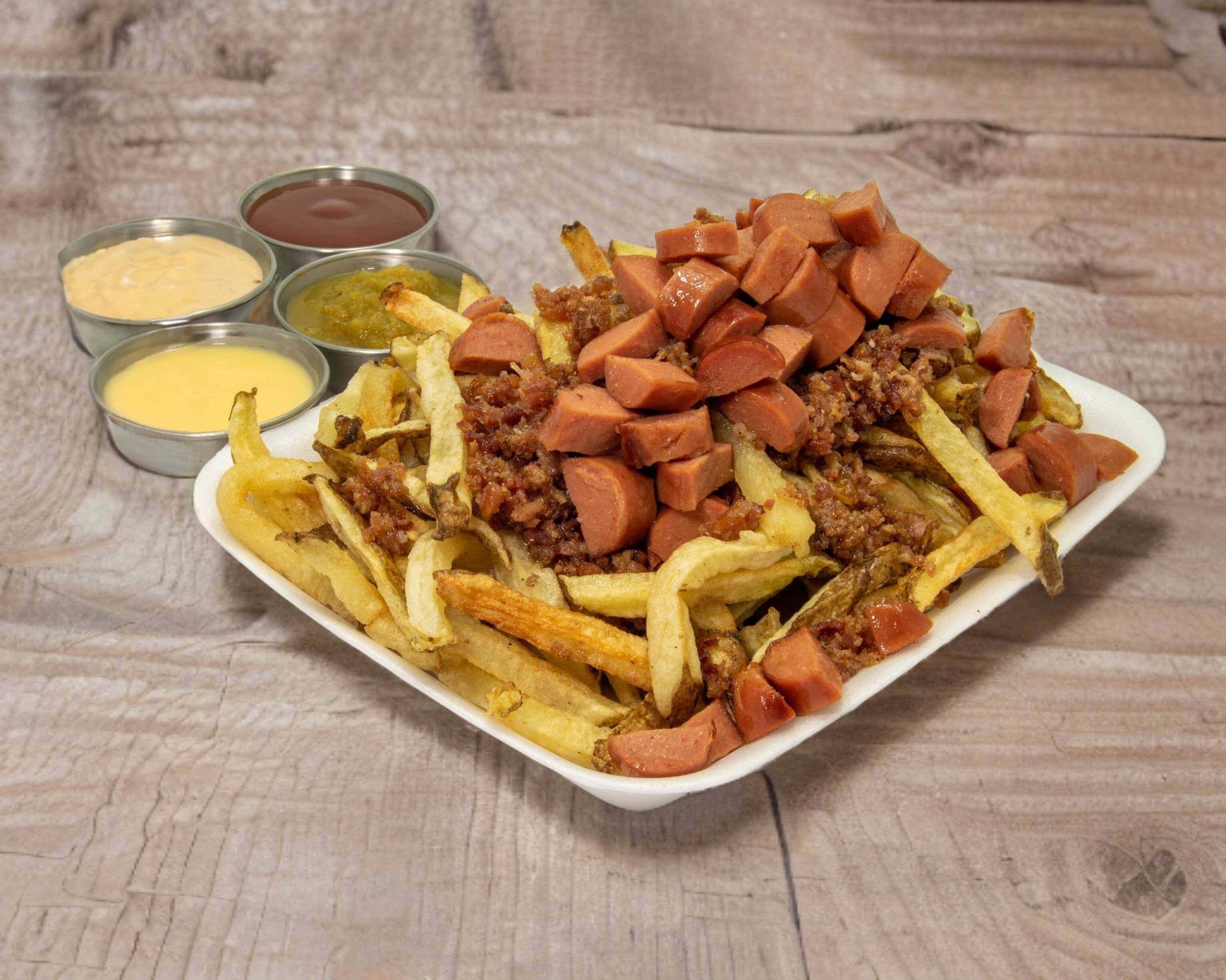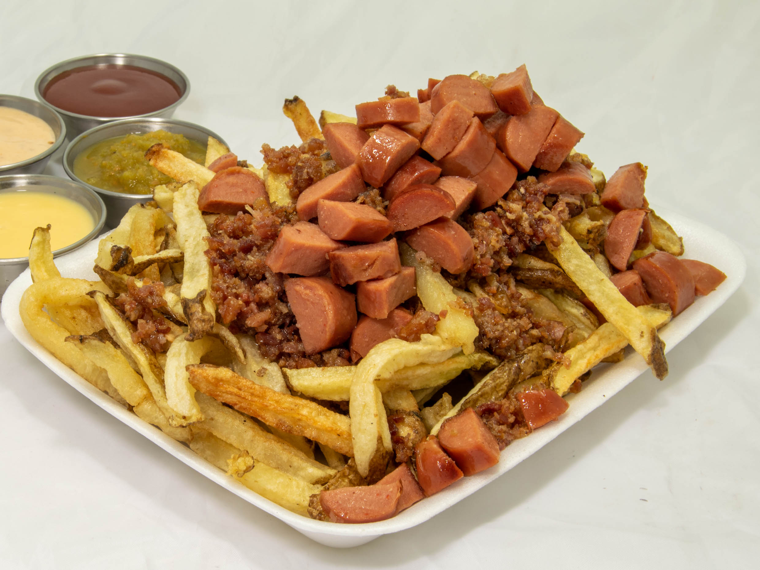 Hot dog con papas*1 + Media orden de Salchipapas*1 + Coca Cola Lata de 355 ml*1