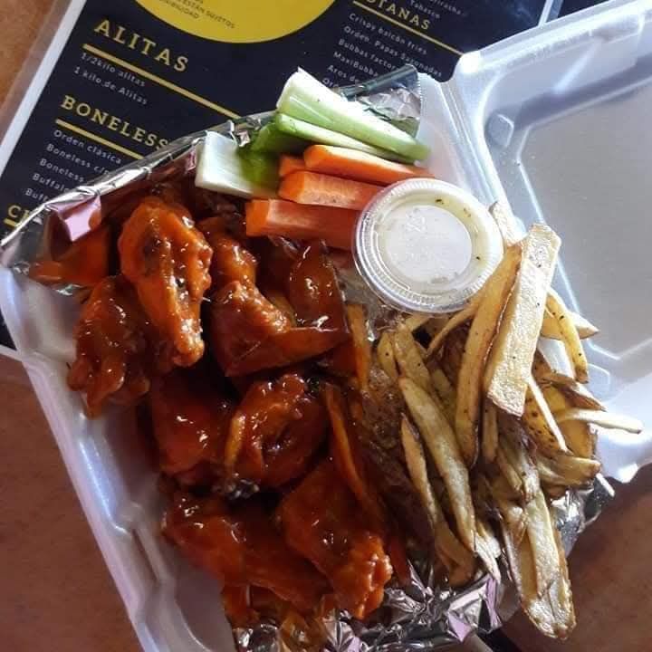 1/2 Kilo de alitas, papas fritas, apio, zanahoria, aderezo ranch.