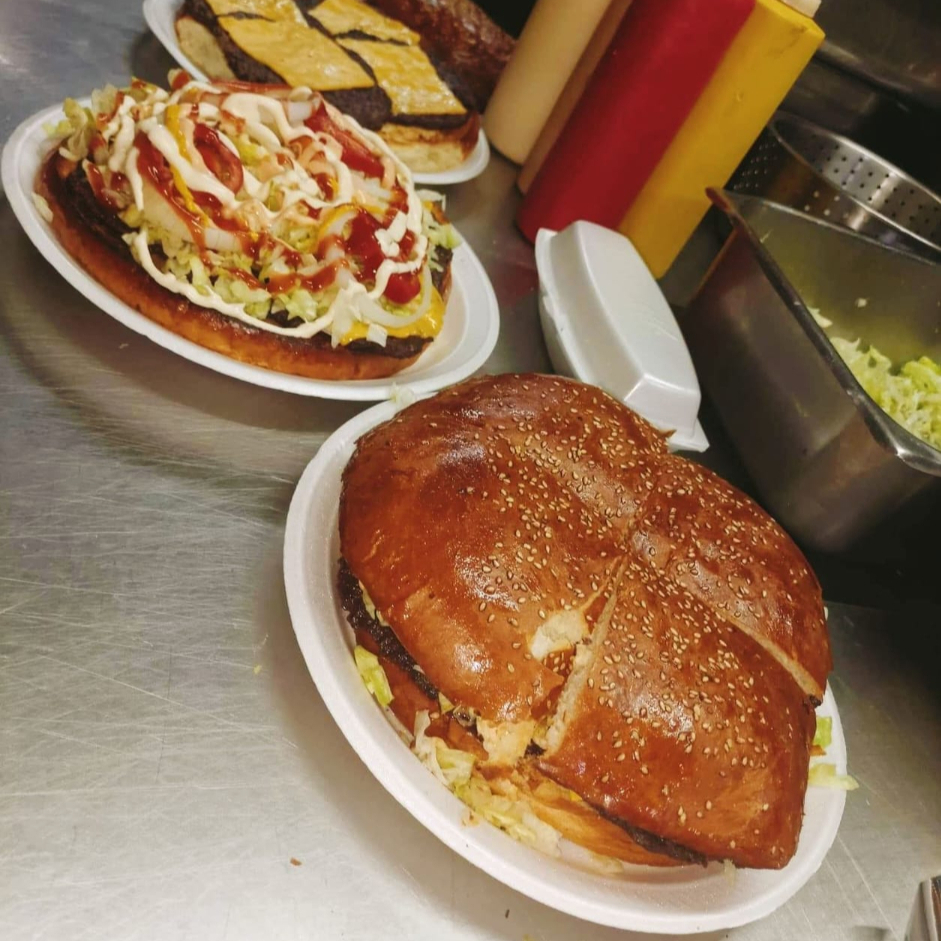 Doble carne de res, doble queso, tomate, cebolla, lechuga, cátsup y aderezo.