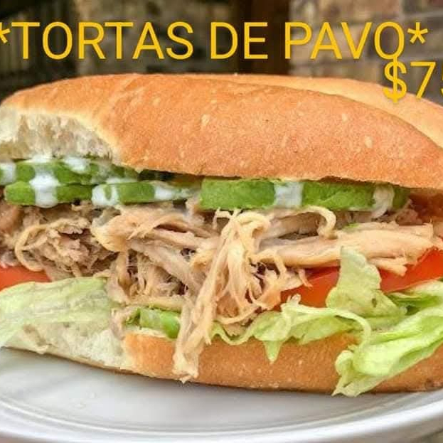 Deliciosa torta con pavo, lechuga, tomate, cebolla, mayonesa, aguacate y queso manchego.