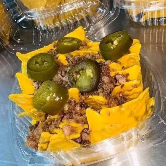 Nachos tradicionales con queso fundido y rodajas de jalapeño.
