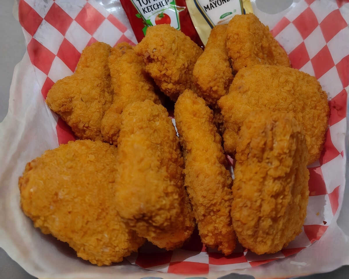 1 kg de boneless, papas fritas, aderezo ranch, apio y queso amarillo.