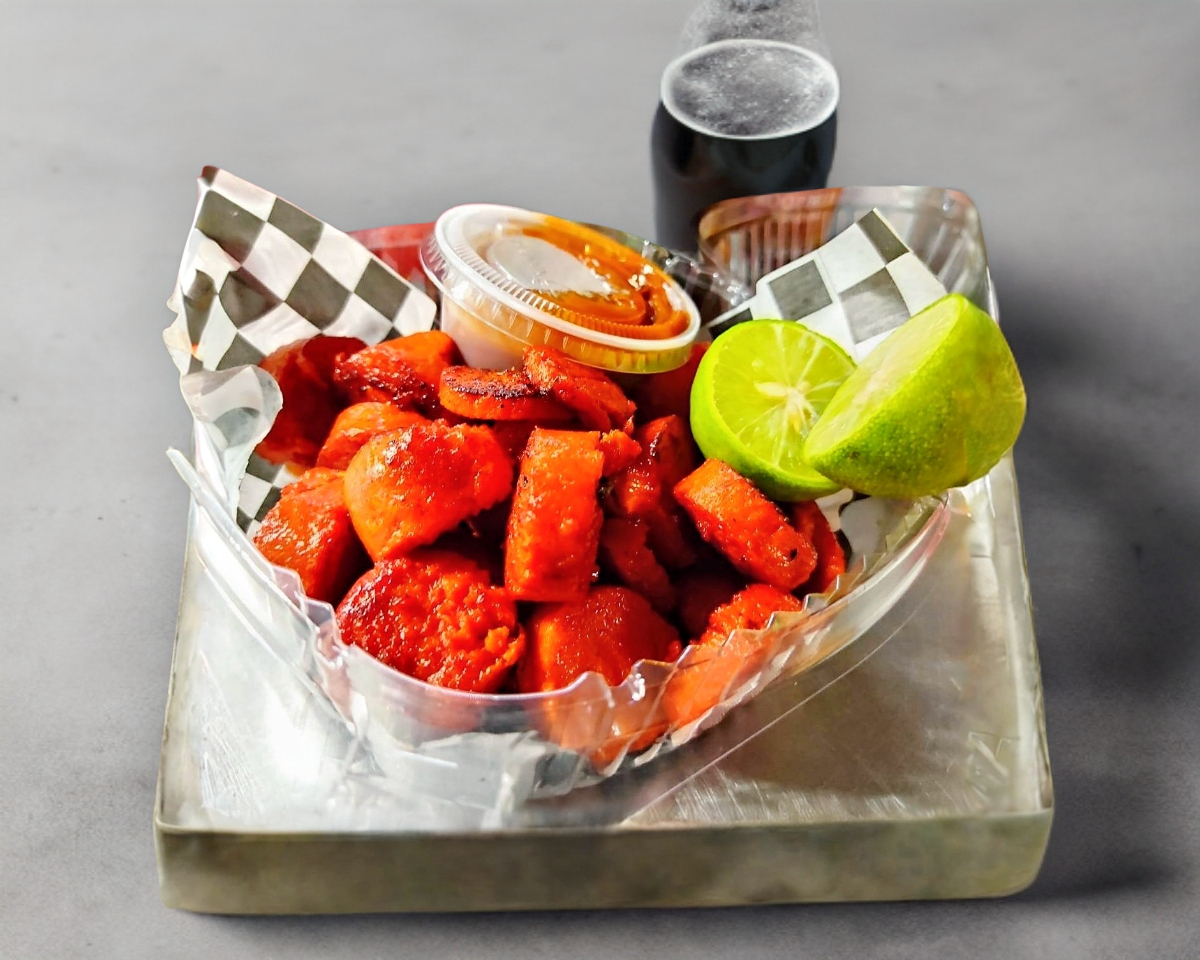Orden de salchicha buba, acompañadas de salsa