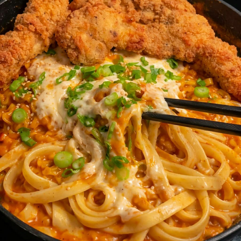 Fetuccini Buldak con Pechuga Empanizada
