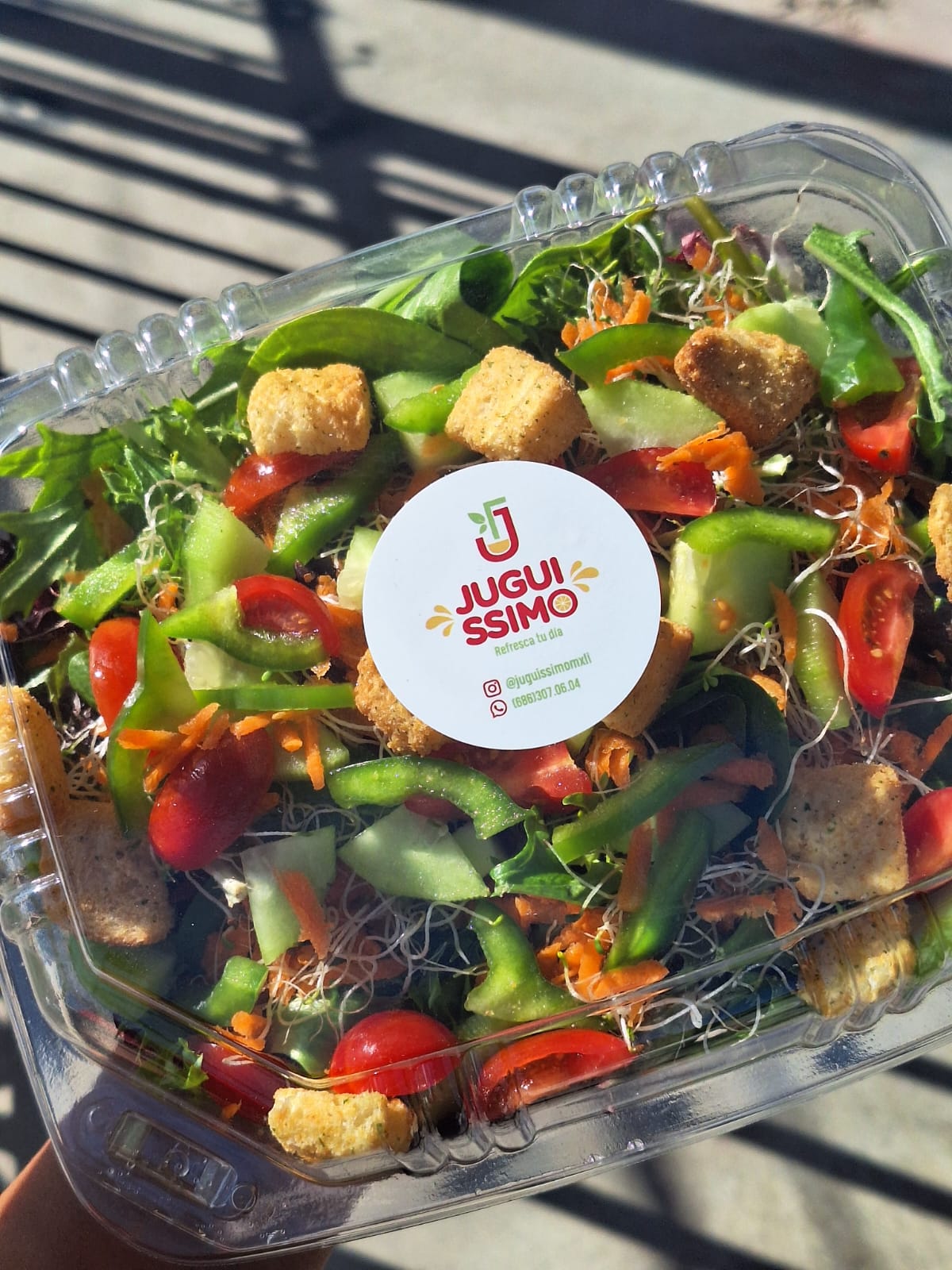 Mix de lechugas, espinacas, alfalfa, pepino, morrón verde, zanahoria rallada y tomate cherry, acompañada de crutones y aderezo ranch.