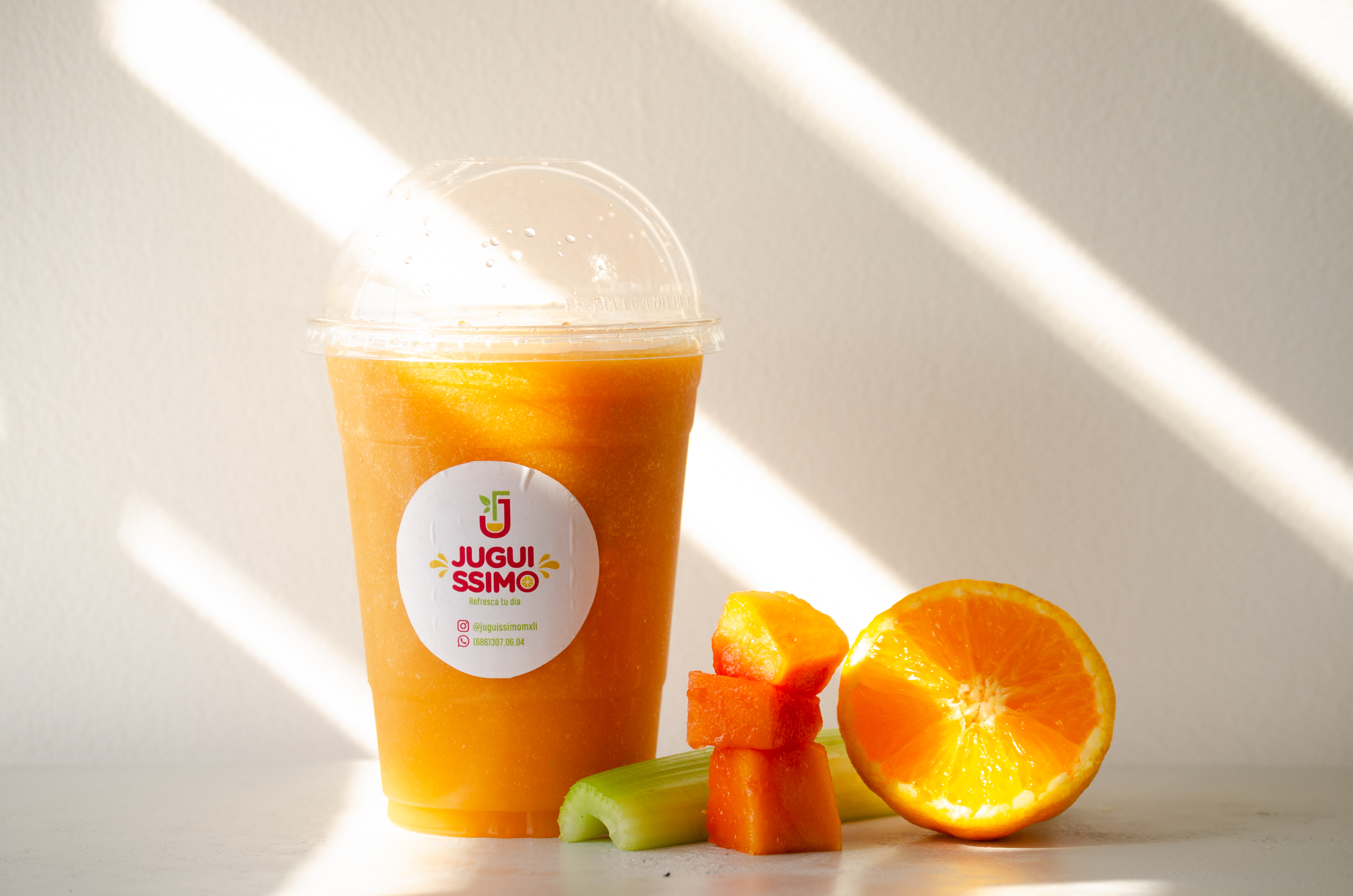 Jugo de naranja, papaya, manzana verde y apio.