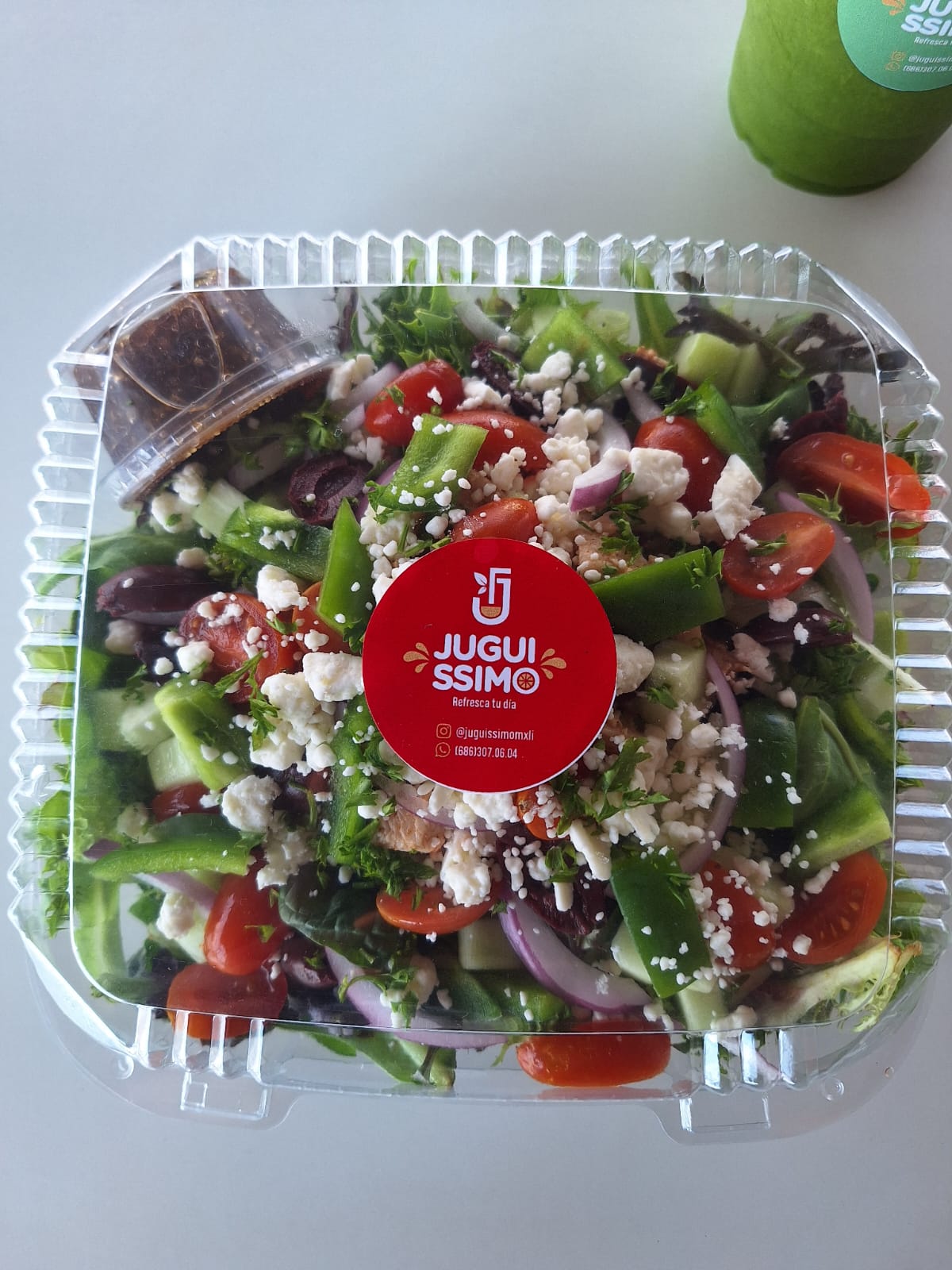 Mix de lechugas, pepino, tomate cherry, queso feta, cebolla morada, aceituna kalamata, perejil fresco, acompañada de vinagreta balsámica.