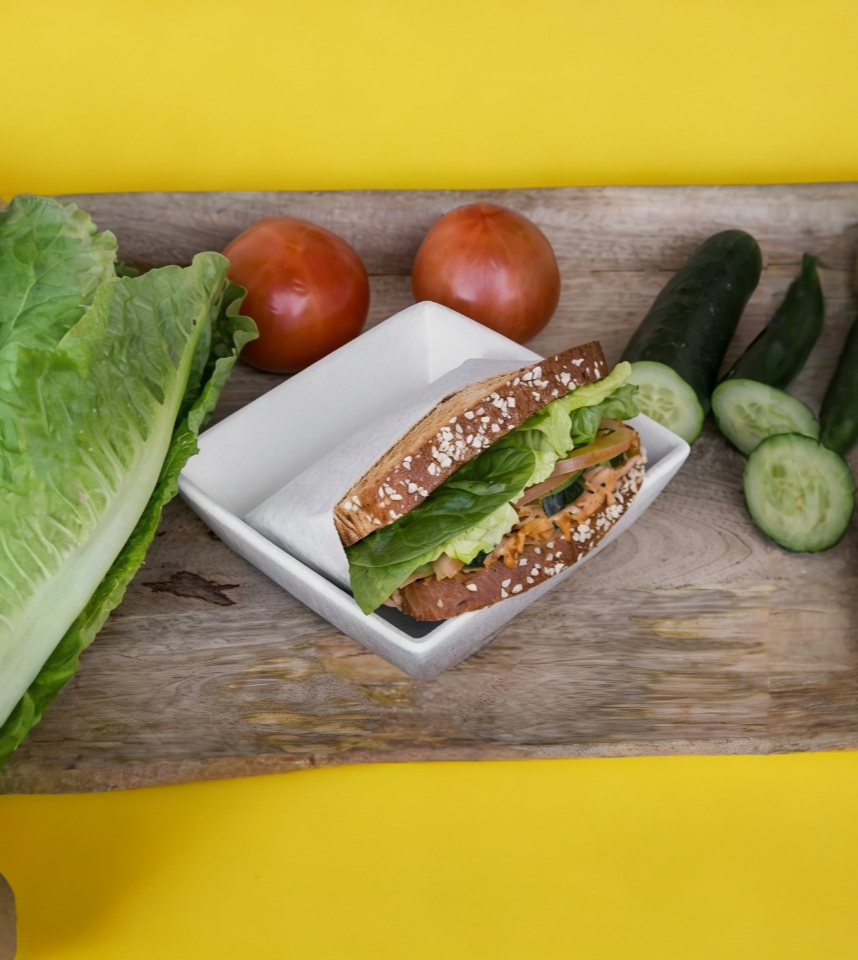 Jamón de pavo, lechuga, espinaca, jitomate, pepino, queso amarillo y mayonesa.