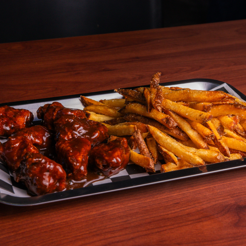 Boneless (200gr) naturales o en salsa a elegir acompañadas de papas fritas.