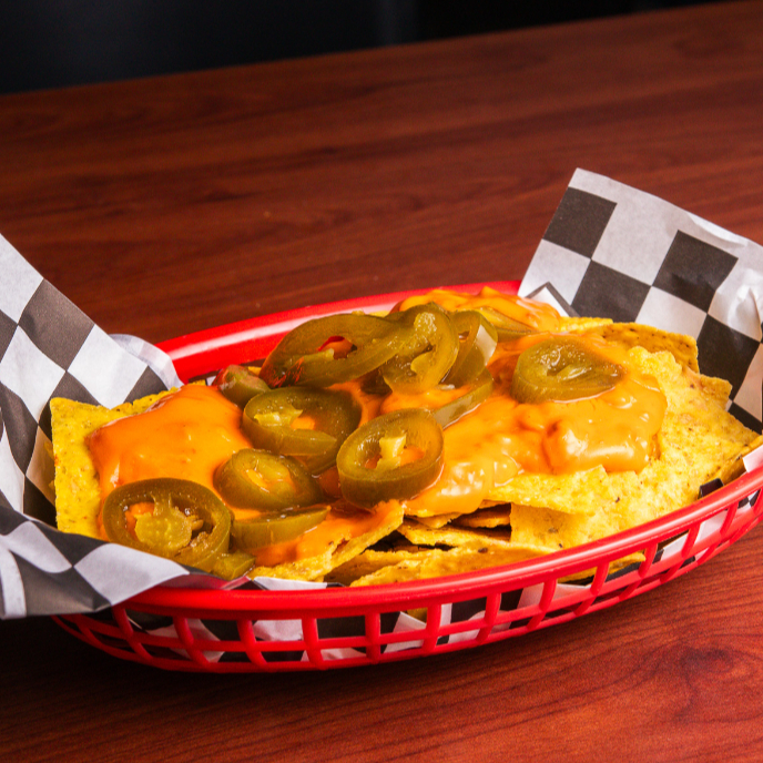 Cama de papas fritas con nachos bañadas en Junky Cheese y jalapeños.