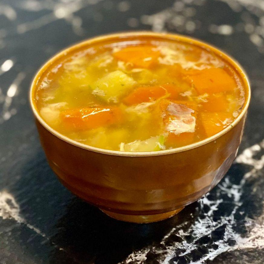 Sopa de pollo reconfortante con verduras mixtas al estilo tradicional japonés.