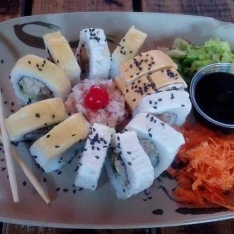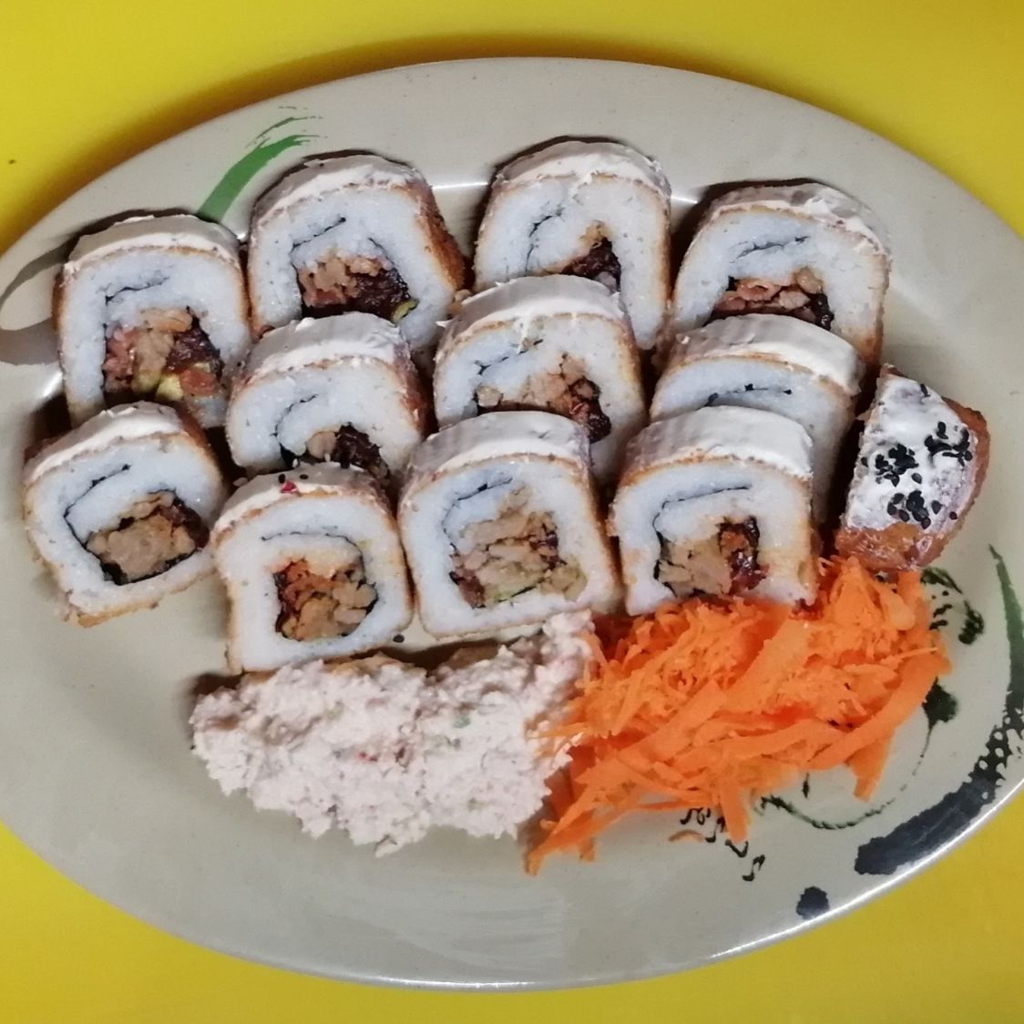 1 porcion de yakiudon + una porcion de teriyaki + 2 rollos (Mexicali Roll y Manchoso Roll)