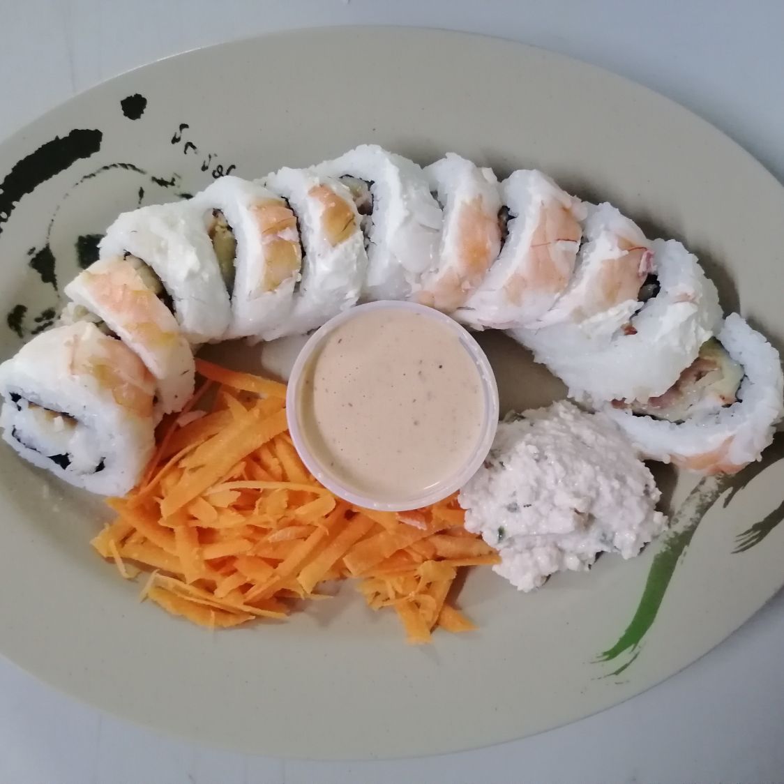 Camarón, queso crema, aguacate, pepino y chipotle.