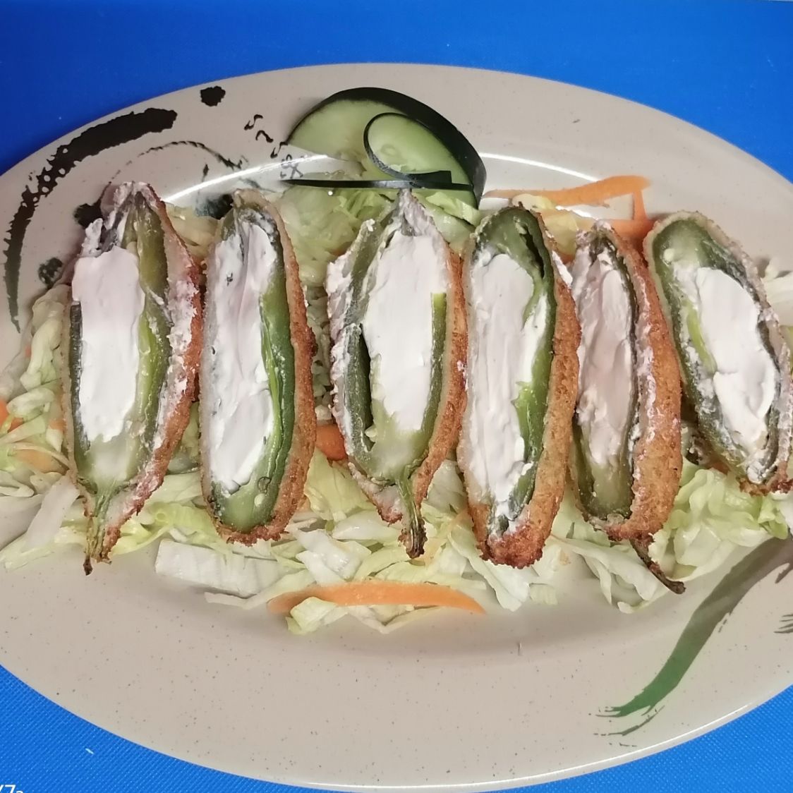 3 piezas de jalapeño desvenado relleno de queso Filadelfia