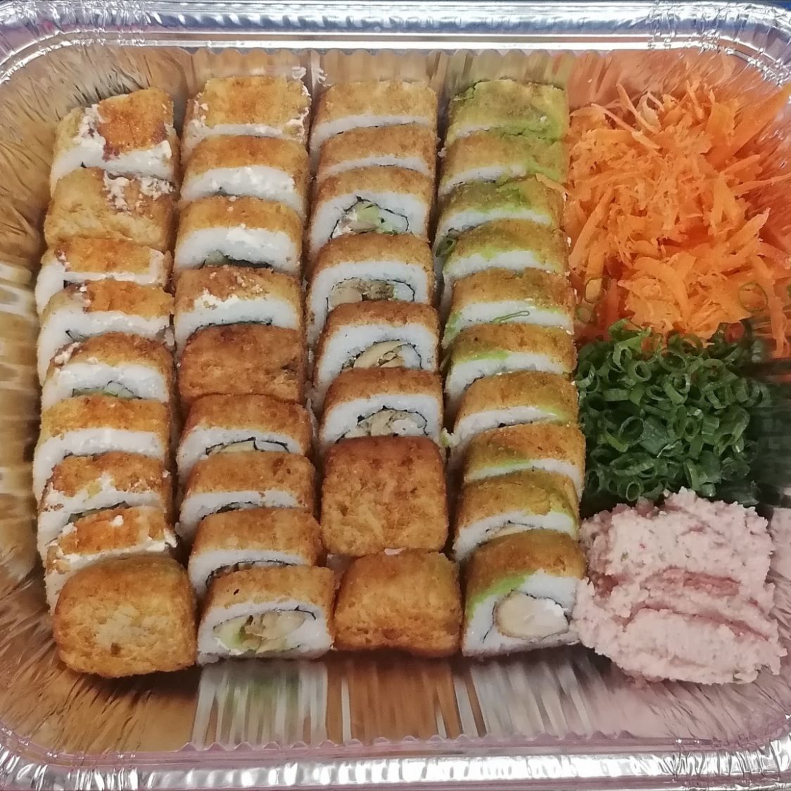 Charola con 3 Sushis (Mexicali Roll, Rollo CMT y Caborquita Roll)(40 bocados)
