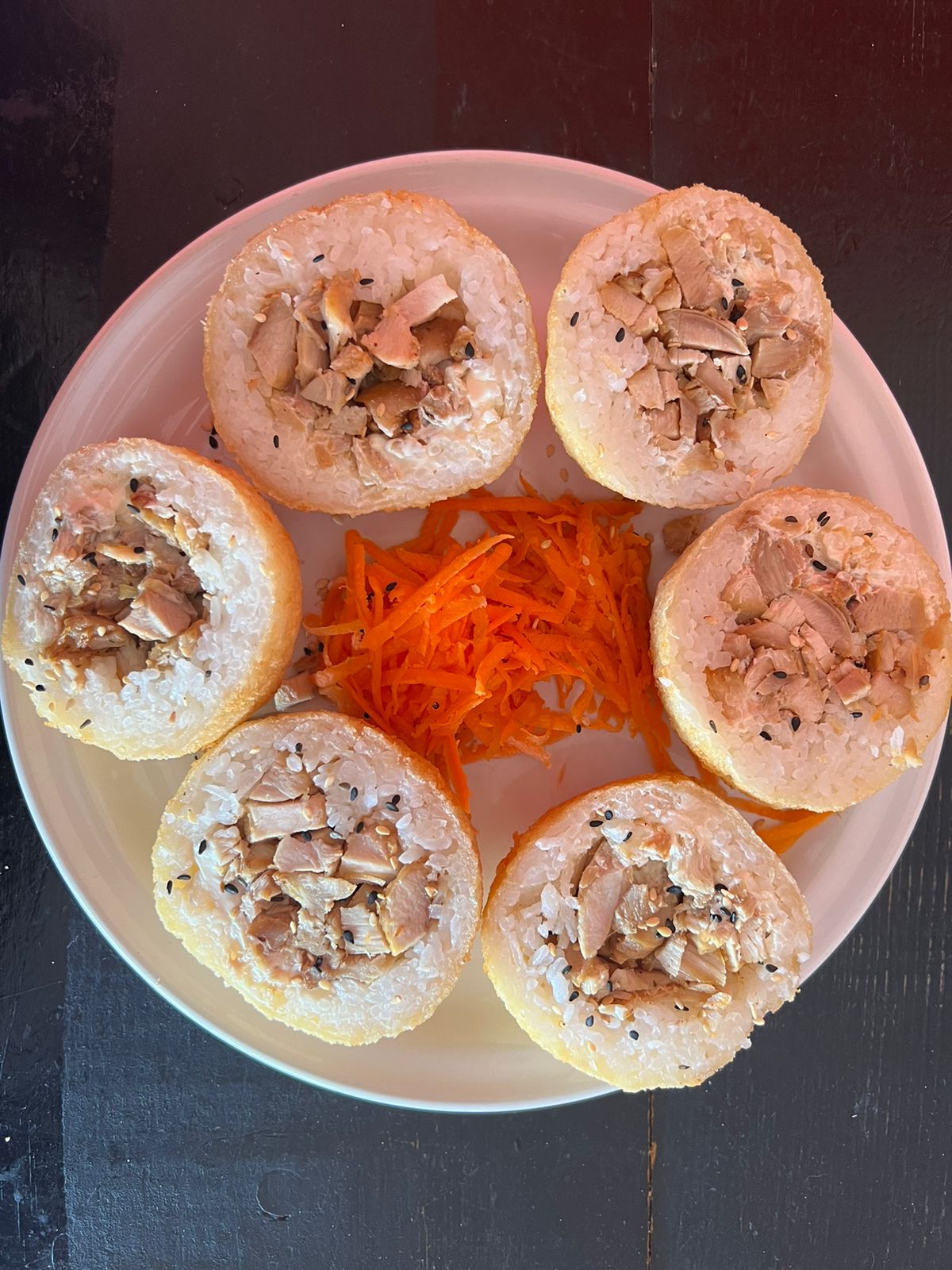 3 Bolas de arroz con philadelphia y pollo.