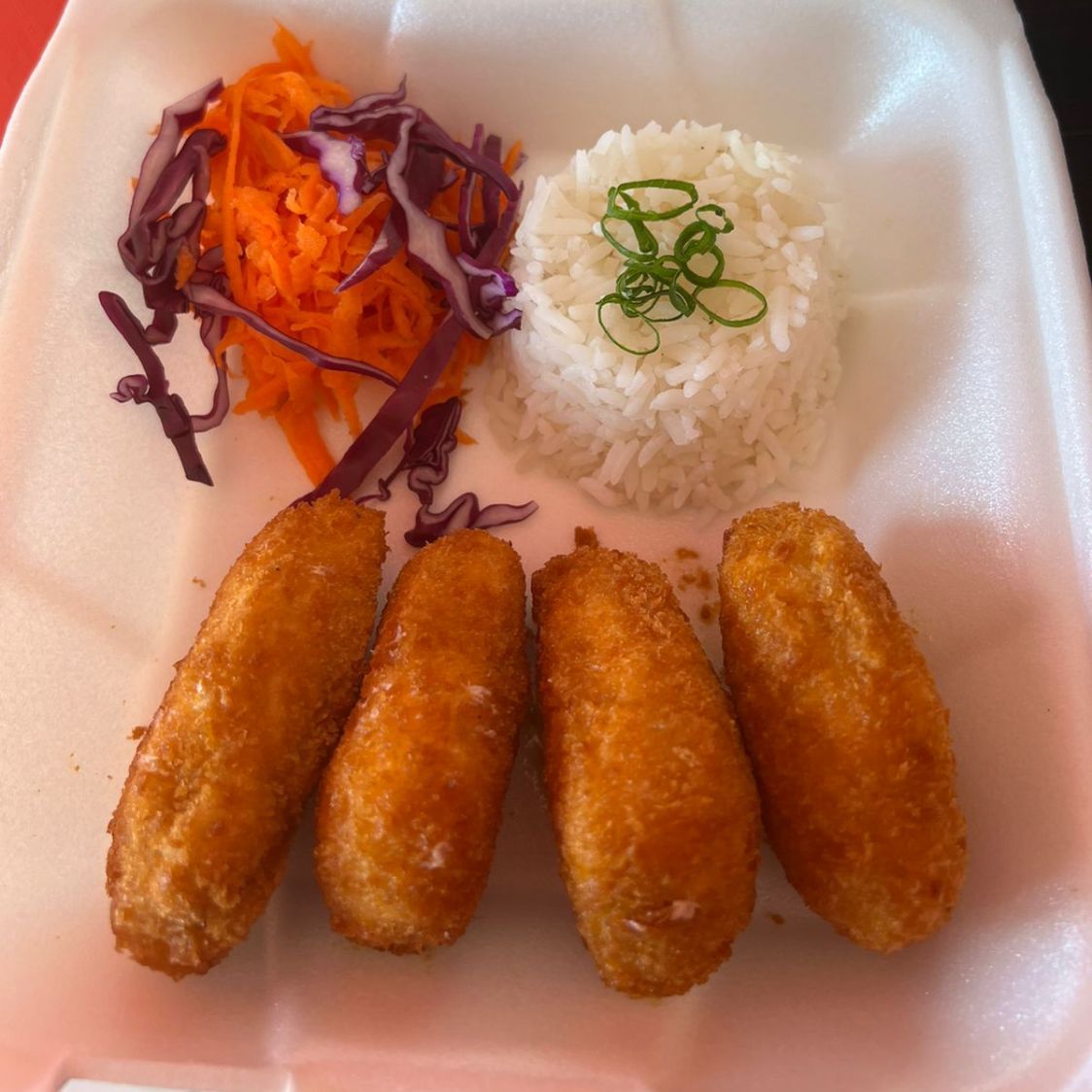 2 rollos de camaron empanizados y teriyaki de pollo