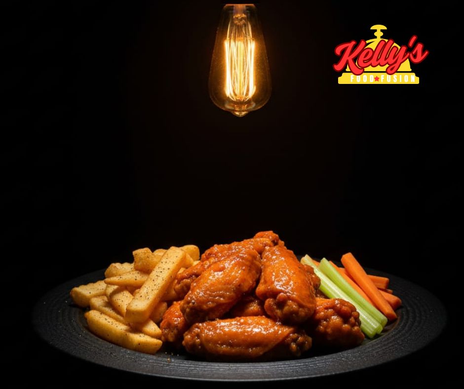 Veinticuatro piezas de alitas bañadas en la salsa de tu elección. Incluye papas fritas, aderezo ranch y 1 salsa extra.