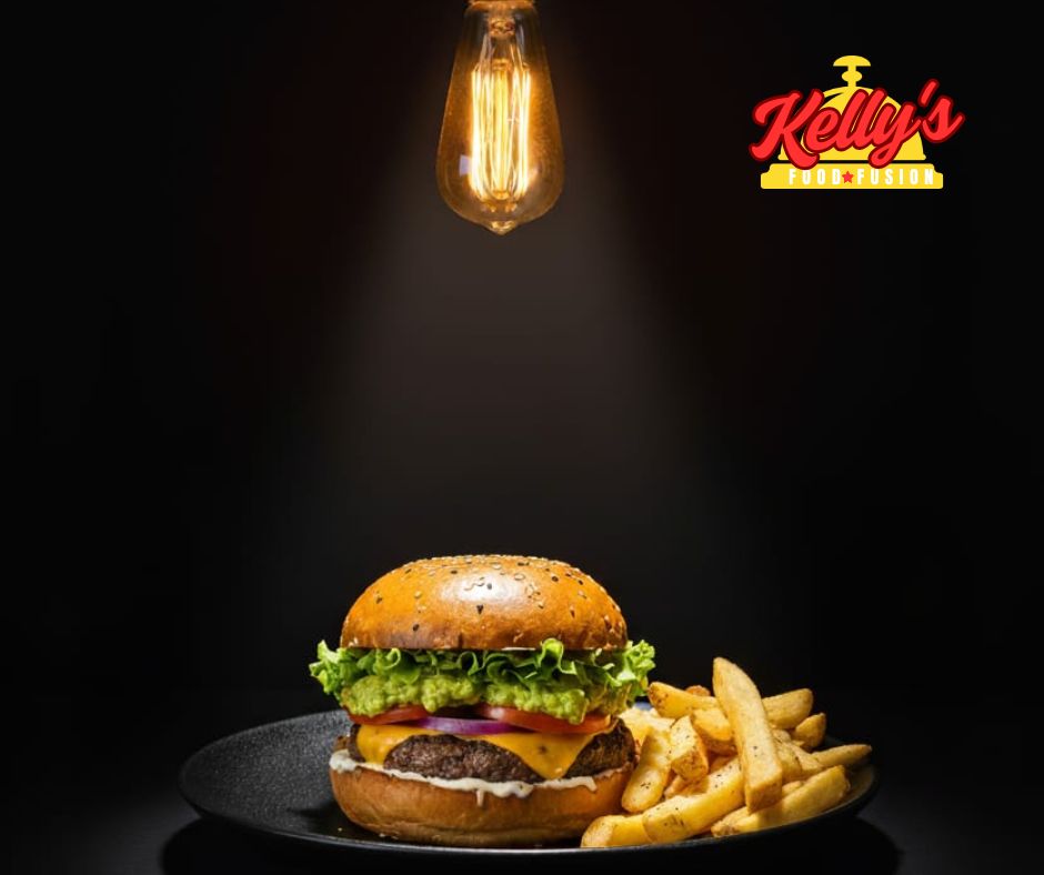 Hamburguesa con carne, queso cheddar, tocino, guacamole, lechuga, tomate y cebolla. Incluye papas fritas o ensalada verde.