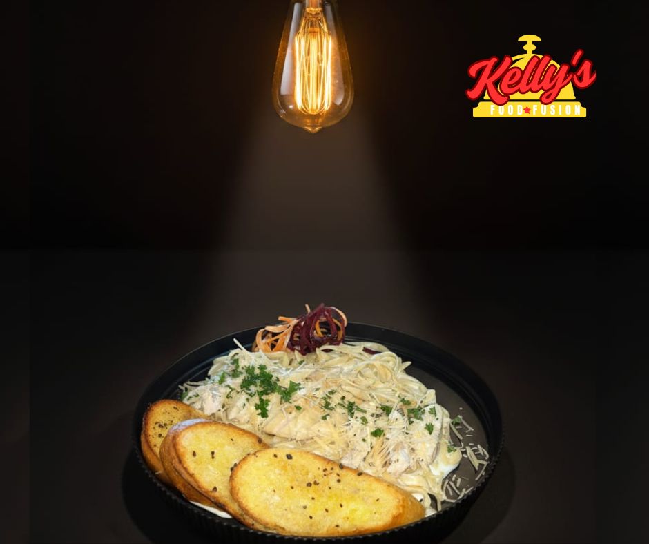 Pechuga de pollo bañada en crema de 3 quesos, acompañada de pan con mantequilla y dos guarniciones a elegir.